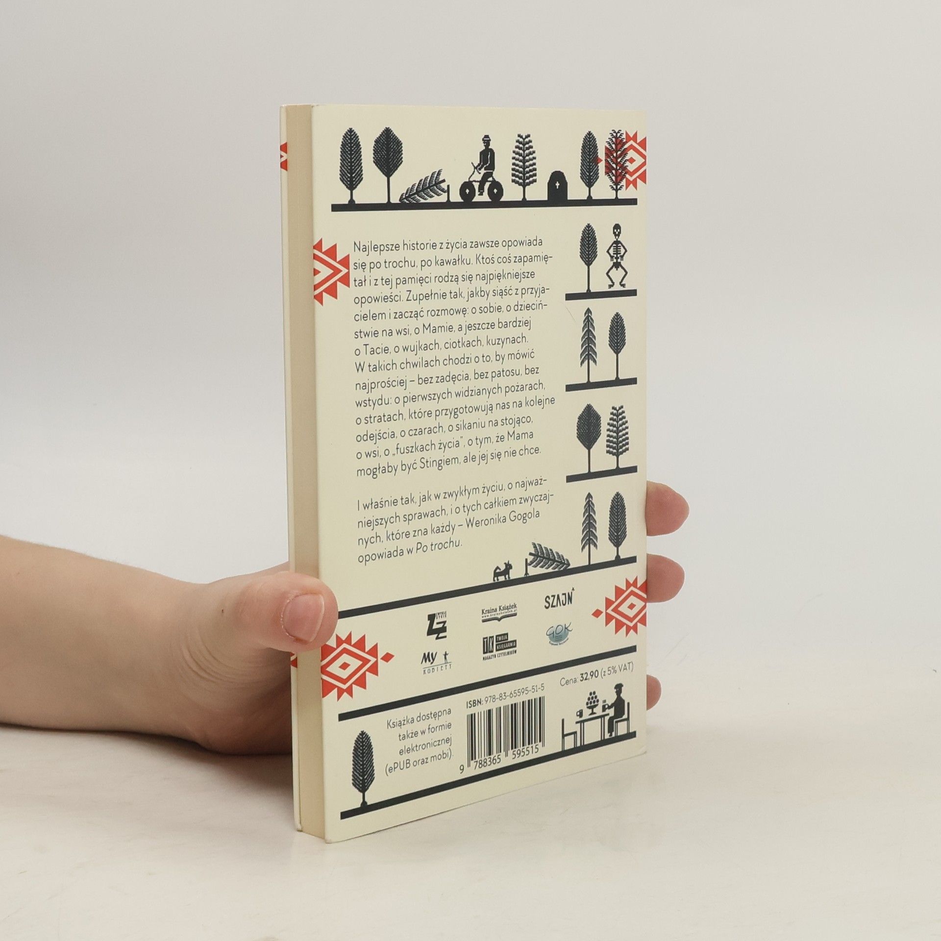 Najlepsze historie ze swojego życia zawsze opowiada się po trochu, po kawałku, to zwykle jakieś urywki, fragmenty. Ktoś coś zapamiętał i z tej pamięci rodzą się najpiękniejsze opowieści. Zupełnie tak, jakby siąść z przyjacielem i zacząć mu opowiadać: o sobie, o dzieciństwie na wsi, o Mamie, a jeszcze bardziej o Tacie, o wujkach, ciotkach, kuzynach. W takich chwilach chodzi o to, by mówić normalnie – bez zadęcia, bez patosu, bez wstydu: o pierwszych widzianych pożarach, o stratach, które przygotowują nas na kolejne odejścia, o czarach, o sikaniu na stojąco, o wsi, o "fuszkach życia", o tym, że Mama mogłaby być Stingiem, a nie jest tylko dlatego, że jej się nie chce.I właśnie tak, jak w zwykłym życiu, o najważniejszych sprawach, i o tych całkiem zwyczajnych, które zna każdy – mówi się w Po trochu.