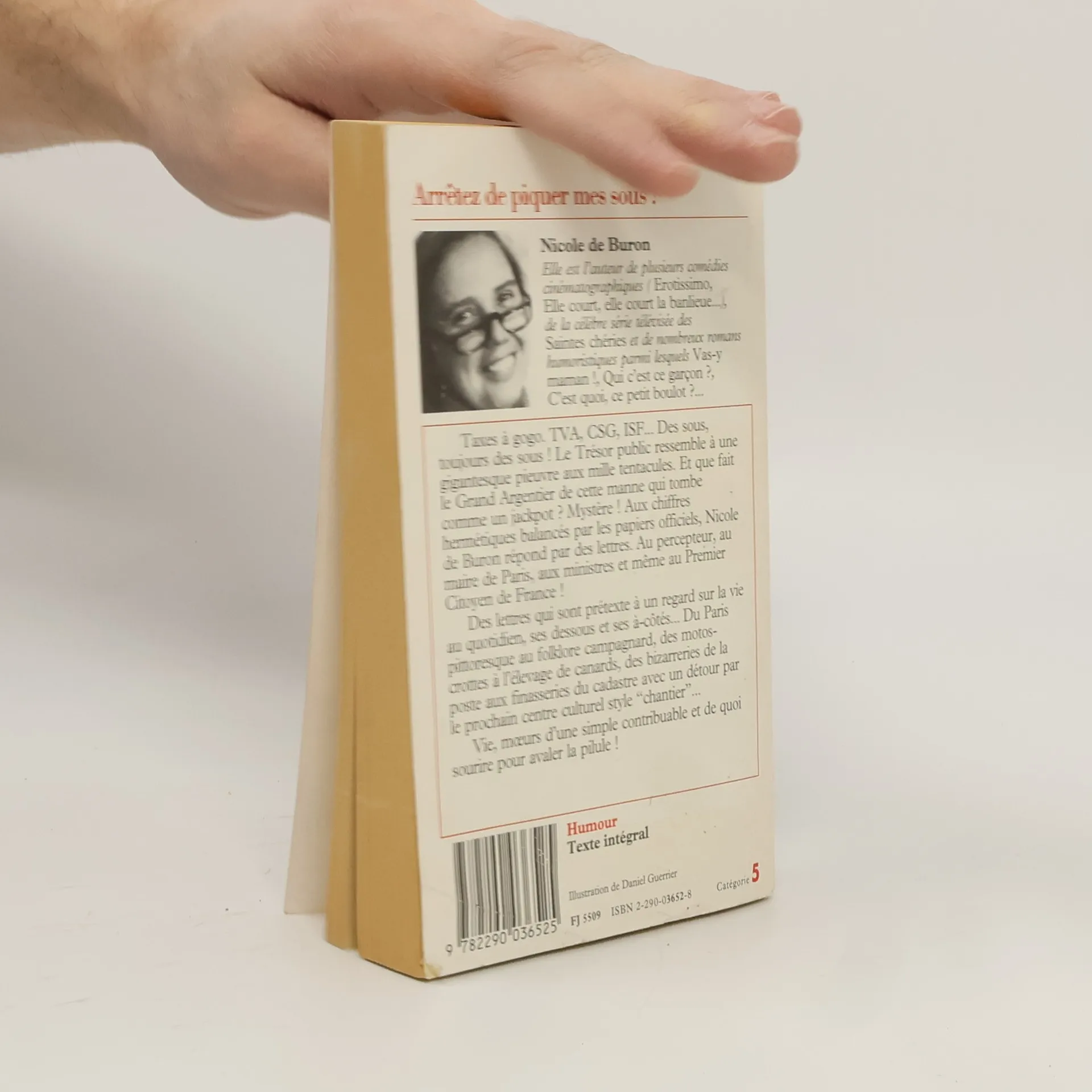 Taxes à gogo. TVA ; CSG, ISF... Des sous, toujours des sous ! Le Trésor public ressemble à une gigantesque pieuvre aux mille tentacules. Et que fait le Grand Argentier de cette manne qui tombe comme un jackpot ? Mystère ! Aux chiffres hermétiques balancés par les papiers officiels, Nicole de Buron répond par des lettres. Au percepteur, au maire de Paris, aux ministres et même au Premier Citoyen de France ! Des lettres qui sont prétextes à un regard sur la vie au quotidien, ses dessous et ses à-côtés... Du Paris pittoresque au folklore campagnard, des motos-crottes à l'élevage des canards, des bizarreries de la poste aux finasseries du cadastre avec un détour par le prochain centre culturel style " chantier "... Vie, mœurs d'une simple contribuable et de quoi sourire pour avaler la pilule !