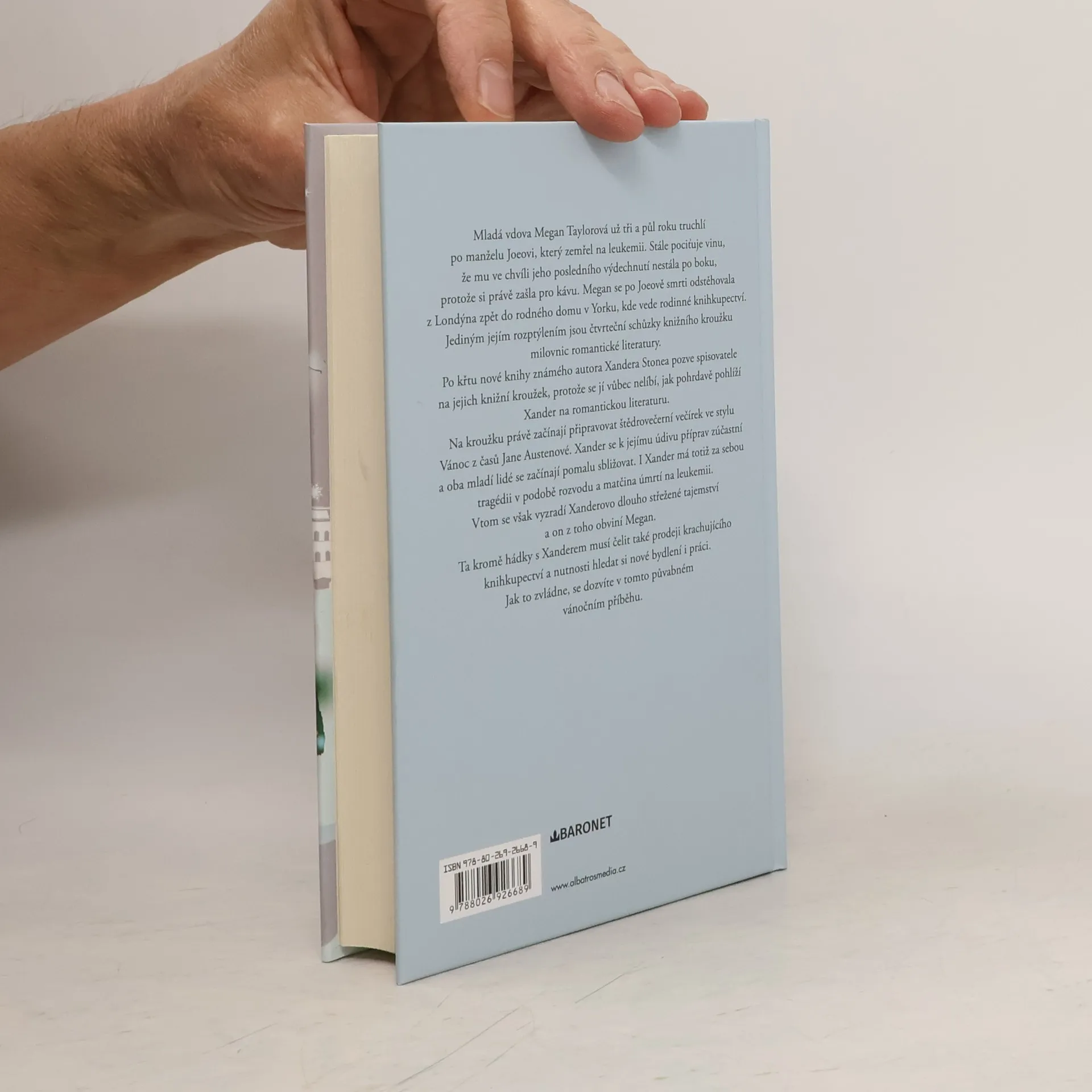 Mladá vdova Megan Taylorová už tři a půl roku truchlí po manželu Joeovi, který zemřel na leukemii. Stále pociťuje vinu, že mu ve chvíli jeho posledního vydechnutí nestála po boku, protože si právě zašla pro kávu. Megan se po Joeově smrti odstěhovala z Londýna zpět do rodného domu v Yorku, kde vede rodinné knihkupectví. Jejím jediným rozptýlením jsou čtvrteční schůzky knižního kroužku milovnic romantické literatury. Po křtu nové knihy známého autora Xandera Stonea pozve spisovatele na jejich knižní kroužek, protože se jí vůbec nelíbí, jak pohrdavě pohlíží Xander na romantickou literaturu. Na kroužku právě začínají připravovat štědrovečerní večírek ve stylu Vánoc z časů Jane Austenové. Xander se k jejímu údivu příprav zúčastní a oba mladí lidé se začínají pomalu sbližovat. I Xander má totiž za sebou tragédii v podobě rozvodu a matčina úmrtí na leukemii. Vtom se však vyzradí Xanderovo dlouho střežené tajemství a on z toho obviní Megan. Ta kromě hádky s Xanderem musí čelit také prodeji krachujícího knihkupectví a nutnosti hledat si nové bydlení i práci. Jak to zvládne, se dozvíte v tomto půvabném vánočním příběhu.
