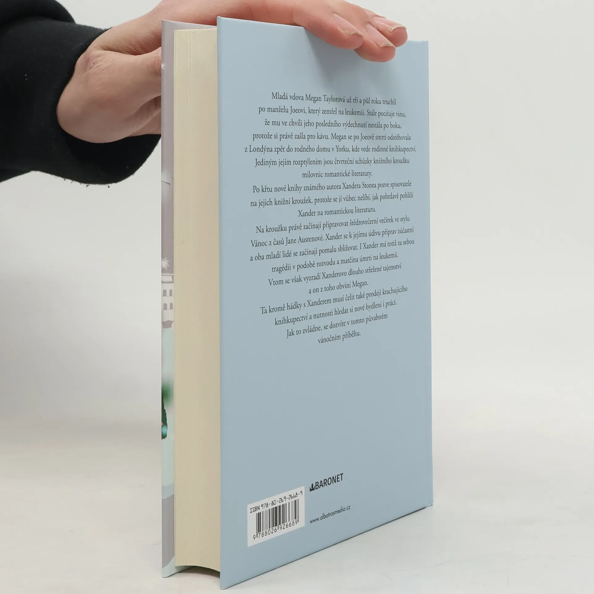 Mladá vdova Megan Taylorová už tři a půl roku truchlí po manželu Joeovi, který zemřel na leukemii. Stále pociťuje vinu, že mu ve chvíli jeho posledního vydechnutí nestála po boku, protože si právě zašla pro kávu. Megan se po Joeově smrti odstěhovala z Londýna zpět do rodného domu v Yorku, kde vede rodinné knihkupectví. Jejím jediným rozptýlením jsou čtvrteční schůzky knižního kroužku milovnic romantické literatury. Po křtu nové knihy známého autora Xandera Stonea pozve spisovatele na jejich knižní kroužek, protože se jí vůbec nelíbí, jak pohrdavě pohlíží Xander na romantickou literaturu. Na kroužku právě začínají připravovat štědrovečerní večírek ve stylu Vánoc z časů Jane Austenové. Xander se k jejímu údivu příprav zúčastní a oba mladí lidé se začínají pomalu sbližovat. I Xander má totiž za sebou tragédii v podobě rozvodu a matčina úmrtí na leukemii. Vtom se však vyzradí Xanderovo dlouho střežené tajemství a on z toho obviní Megan. Ta kromě hádky s Xanderem musí čelit také prodeji krachujícího knihkupectví a nutnosti hledat si nové bydlení i práci. Jak to zvládne, se dozvíte v tomto půvabném vánočním příběhu.