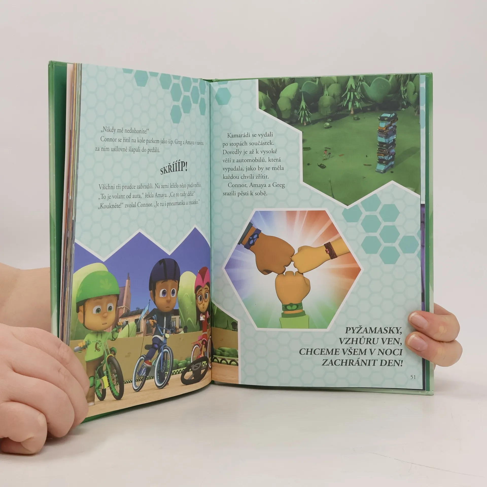 Seznamte se se Sovičkou, Kočičákem a Gekkem, statečnými malými superhrdiny, kteří ve dne chodí do školy jako všechny ostatní děti a v noci s pomocí důvtipu a superschopností bojují se zločinem. Pyžamasky vyrážejí do akce! Přečtěte si o tom, jak Pyžamasky vyzrály na lstivého nočního nindžu a jak si poradily s padouchem, který obsadil muzeum, aby mohl dokončit svůj strašlivý vynález.