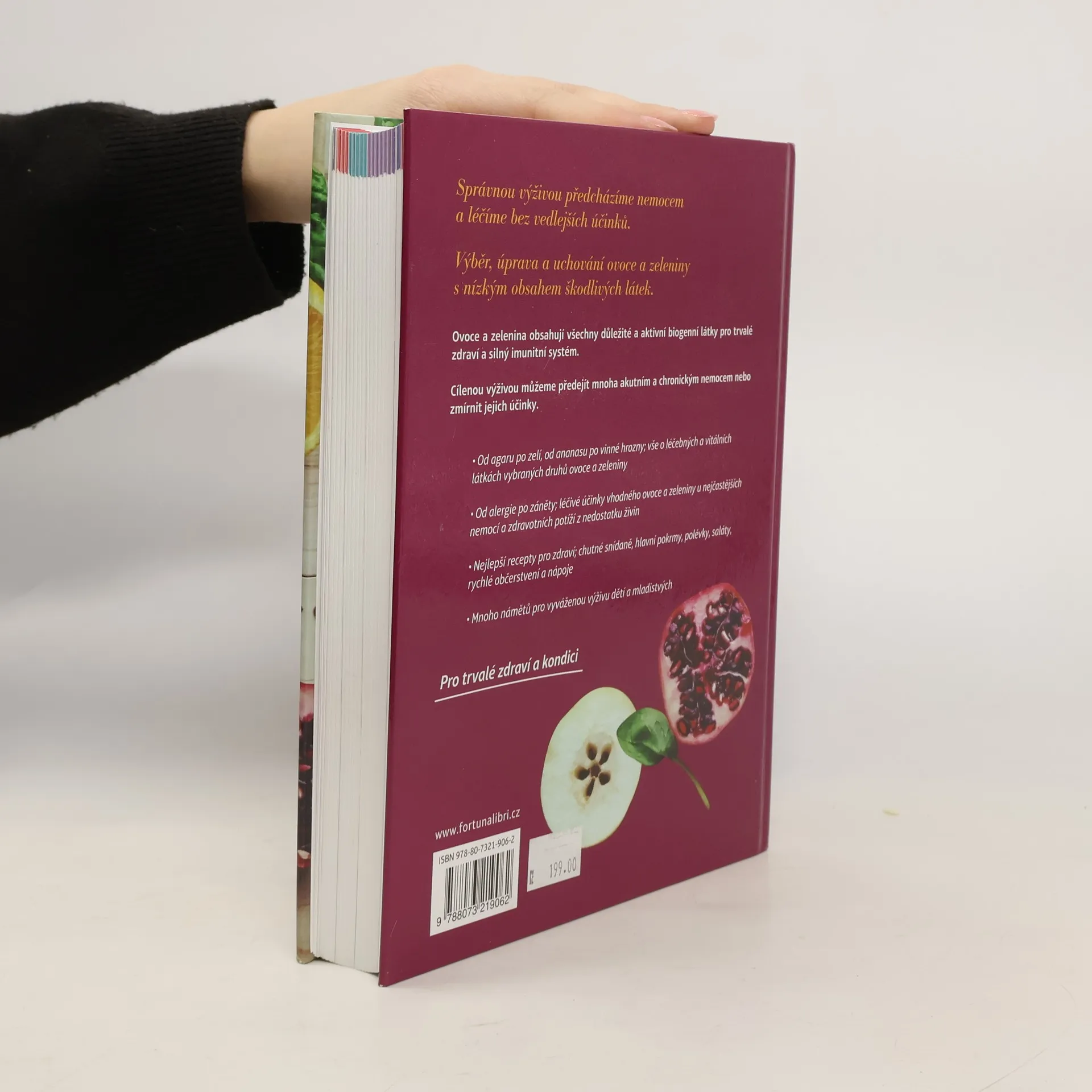 Předcházení nemocem a léčba bez vedlejších účinků prostřednictvím správné výživy - ovocnými a zeleninovými pokrmy. Přehled a popis jednotlivých druhů ovoce a zeleniny (řazení podle německého originálu), charakteristika, původ a rozšíření, léčivé účinky. U každého druhu zeleniny nebo ovoce je návod na přípravu zdravého jídla. Přehled ovoce a zeleniny s obsahem mnohých léčivých látek, jejichž konzumace pomáhá proti běžným zdravotním problémům. Kuchařské předpisy na přípravu zdravých jídel.