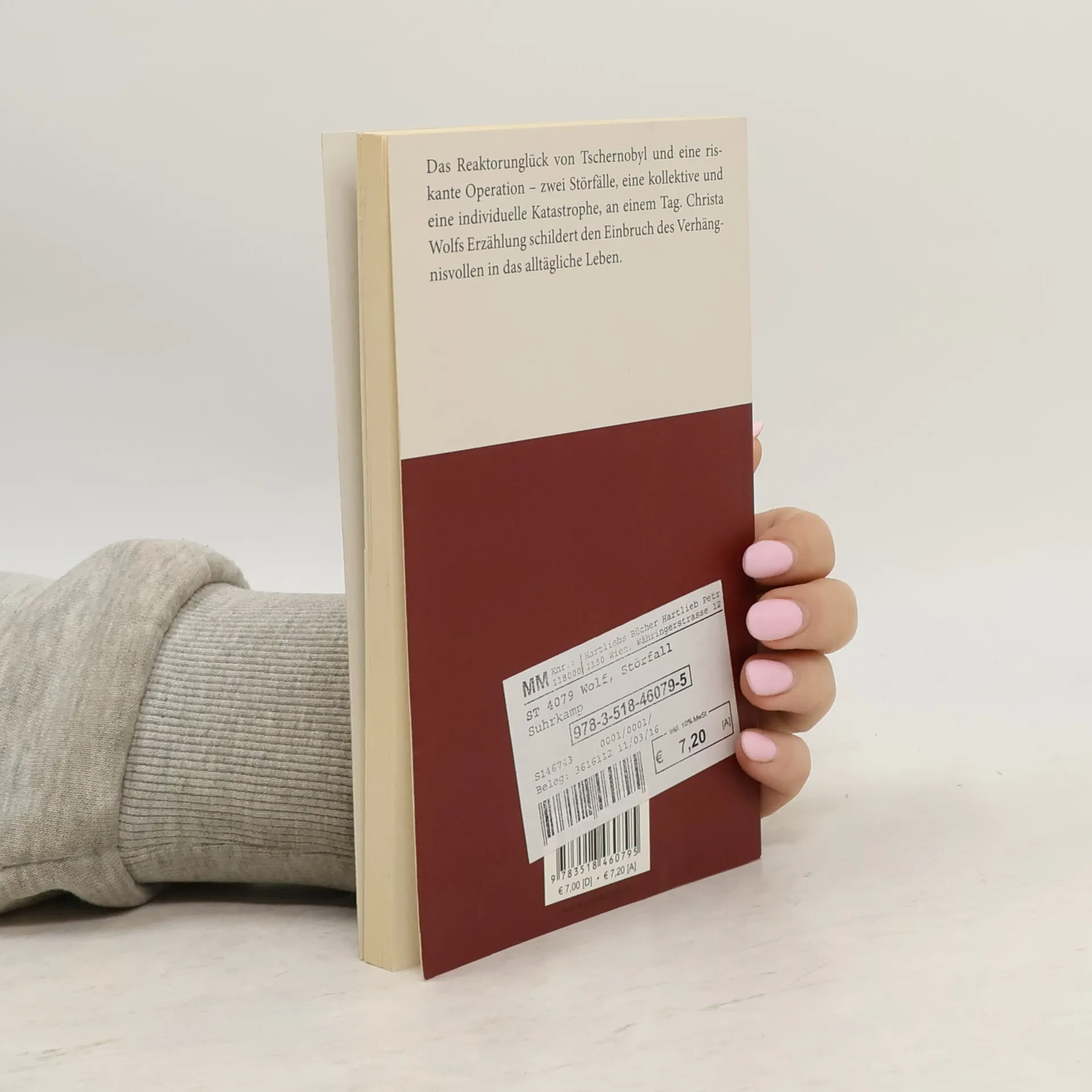 Im Frühling 1986, auf dem mecklenburgischen Land, sind die Blüten an den Kirschbäumen förmlich explodiert – aber das Wort vom Explodieren wagt man nicht einmal mehr zu denken, seit die Nachricht sich verbreitet: Im Kernreaktor von Tschernobyl hat eine Explosion stattgefunden. Und während die Erzählerin den stündlichen Warnungen im Radio lauscht, muß sich ihr Bruder einer riskanten Gehirnoperation unterziehen. Zwei Störfälle, eine kollektive und eine individuelle Katastrophe, an einem Tag: Christa Wolfs Erzählung schildert den Einbruch des Unfaßbaren in das menschliche Leben, entfesselte Kräfte, über die wir keine Kontrolle mehr haben.