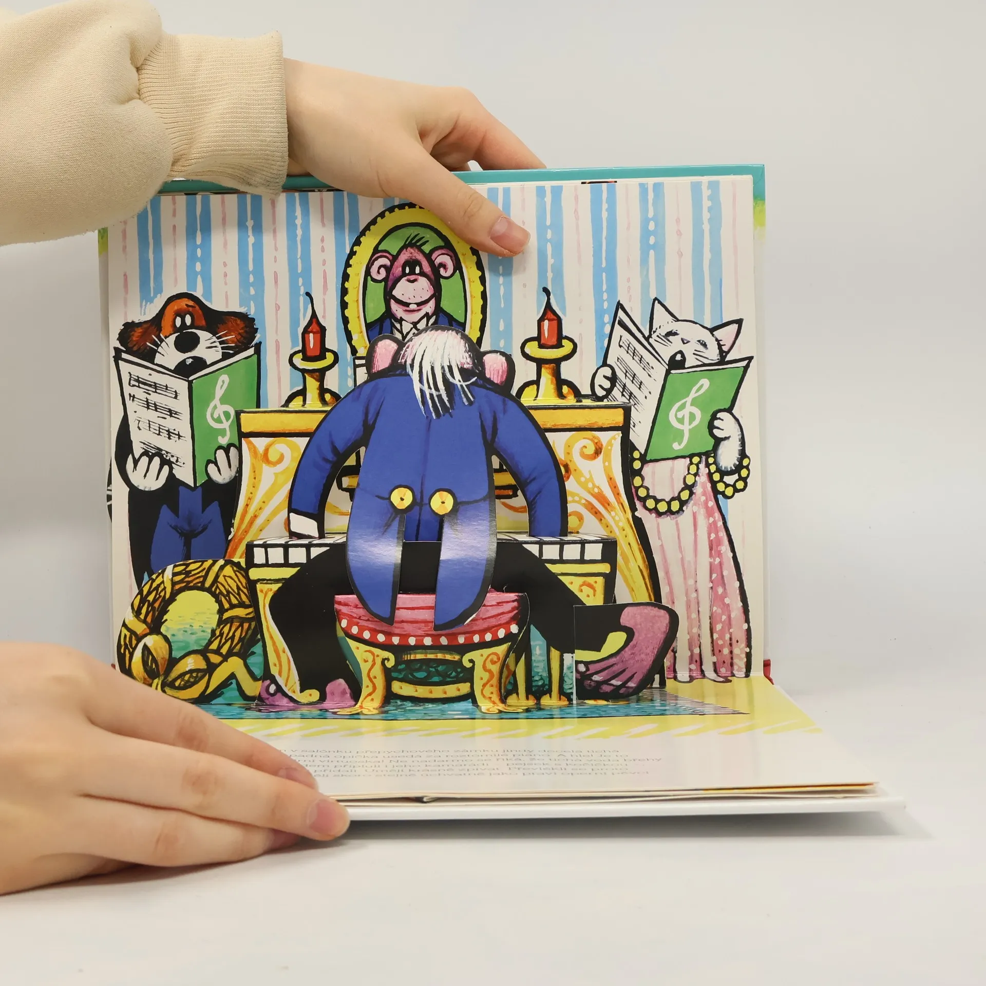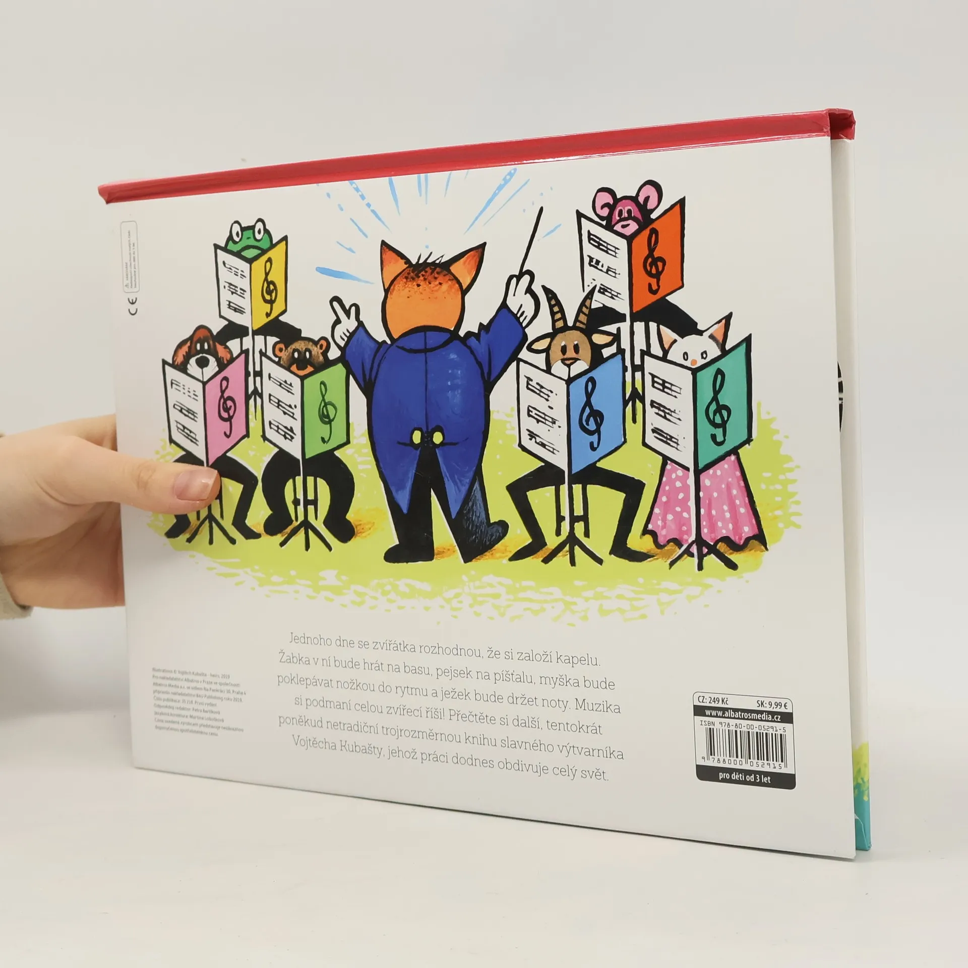 Jednoho dne se zvířátka rozhodnou, že si založí kapelu. Žabka v ní bude hrát na basu, pejsek na píšťalu, myška bude poklepávat nožkou do rytmu a ježek bude držet noty. Muzika si podmaní celou zvířecí říši! Přečtěte si další, tentokrát poněkud netradiční trojrozměrnou knihu slavného výtvarníka Vojtěcha Kubašty, jehož práci dodnes obdivuje celý svět.