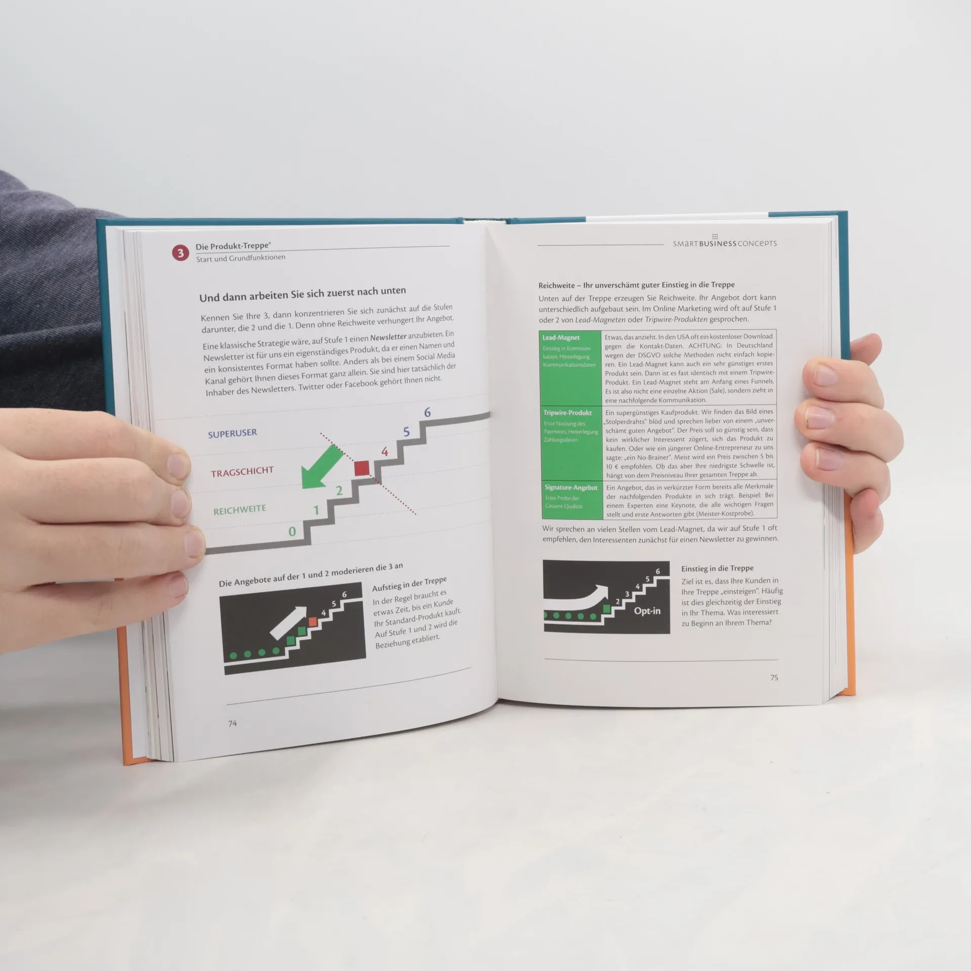 Die meisten Geschäftskonzepte sind zu kompliziert und leiden daran. Bringen Sie mit Hilfe der Produkt-Treppe® Ihre Geschäfts-Strategie konsequent auf den Punkt. Die Produkt-Treppe® ist das intuitive, schnelle Business Modelling Tool für Selbstständige, Solopreneure, Experten, smarte Teams und Projektleiter. Erfahren Sie, wie ein professionelles Portfolio-Modell funktioniert, Sie gezielt ein Superuser-Segment aufbauen, Sie solo agil sprinten und Sie Ihre Arbeitsfreiheit und Produktivität steigern. Im Buch enthalten sind: Theorie und Praxis zur Produkt-Treppe®. Überblick über die wichtigsten Business Modelling Methoden. Die Magie der 3 Schichten. Über 100 Grafiken, die zeigen, wie es funktioniert.