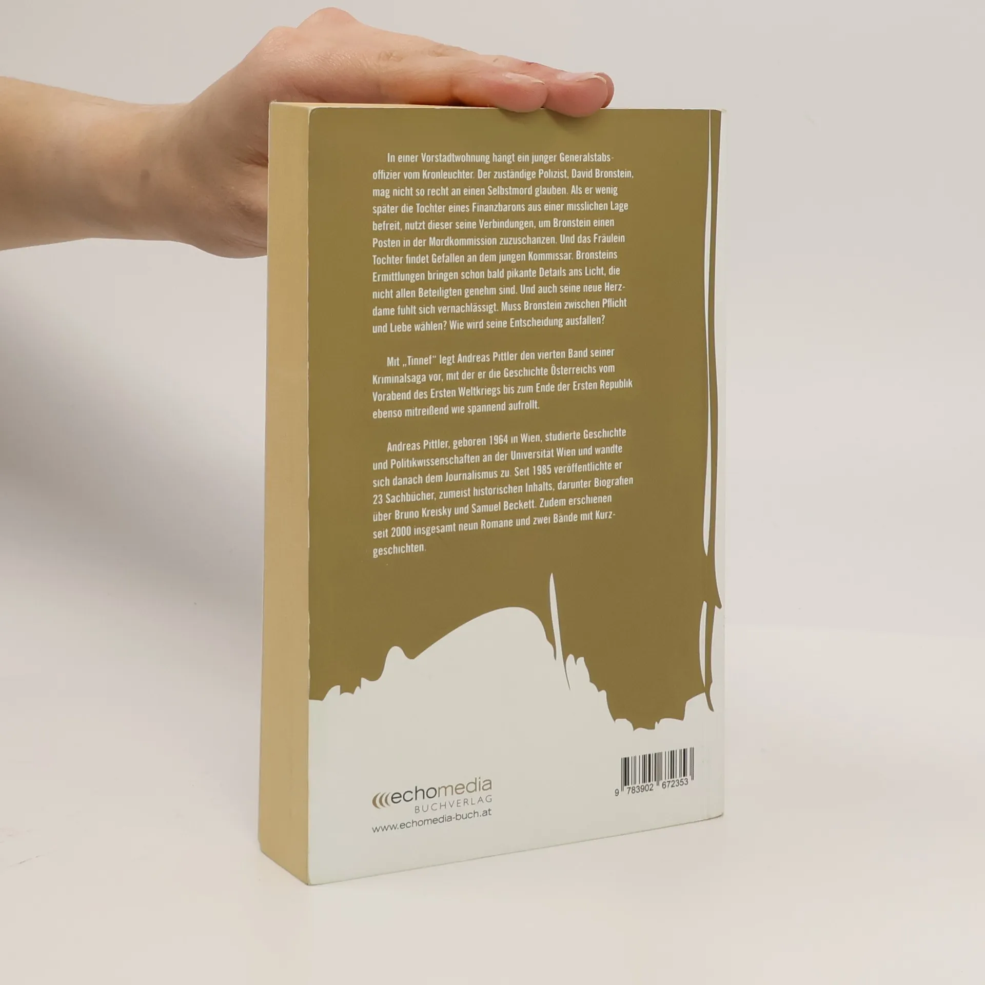 In einer Vorstadtwohnung hängt ein junger Generalstabsoffizier vom Kronleuchter. Der zuständige Polizist, David Bronstein, mag nicht so recht an einen Selbstmord glauben. Als er wenig später die Tochter eines Finanzbarons aus einer misslichen Lage befreit, nutzt dieser seine Verbindungen, um Bronstein einen Posten in der Mordkommission zuzuschanzen. Und das Fräulein Tochter findet Gefallen an dem jungen Kommissar. Bronsteins Ermittlungen bringen schon bald pikante Details ans Licht, die nicht allen Beteiligten genehm sind. Und auch seine neue Herzdame fühlt sich vernachlässigt. Muss Bronstein zwischen Pflicht und Liebe wählen? Wie wird seine Entscheidung ausfallen? Mit „Tinnef“ legt Andreas Pittler den vierten Band seiner Kriminalsaga vor, mit der er die Geschichte Österreichs vom Vorabend des Ersten Weltkriegs bis zum Ende der Ersten Republik ebenso mitreißend wie spannend aufrollt.