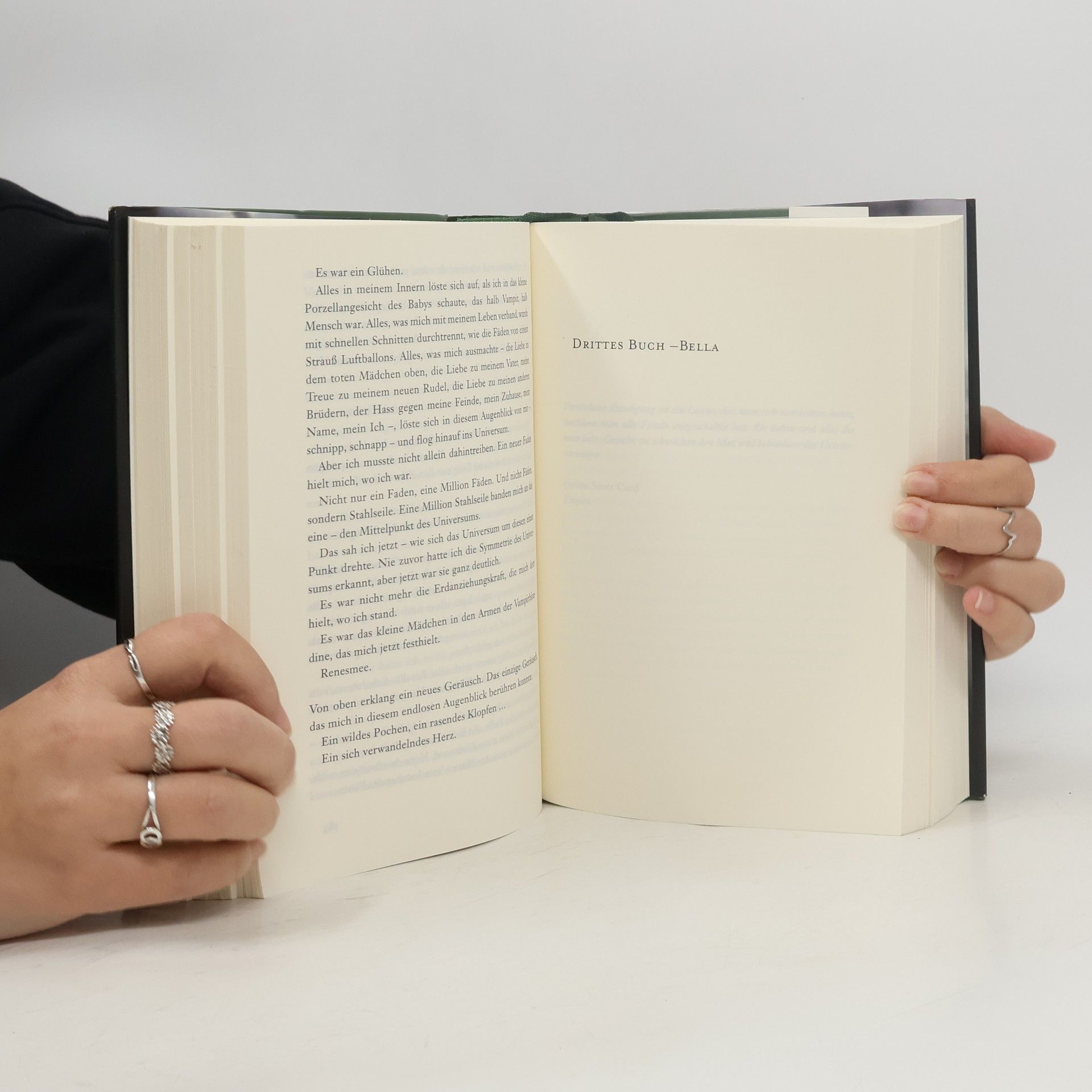 Wenn man von dem getötet wird, den man liebt, hat man keine Wahl. Wie kann man fliehen, wie kämpfen, wenn man damit dem Geliebten wehtun würde? Wenn das eigene Leben das Einzige ist, was man dem Geliebten geben kann, wie kann man es ihm dann verweigern? Wenn es jemand ist, den man wirklich liebt? Ein Jahr voller Glück, aber auch voller Schmerz liegt hinter Bella. Ein Jahr, in dem sie fast zerbrochen wäre, weil ihre Leidenschaft für Edward und ihre innige Freundschaft zu Jacob einfach unvereinbar sind. Aber nun ist ihre Entscheidung gefallen. Unwiderruflich, auch wenn es so aussieht, als setze sie eine Entwicklung in Gang, die möglicherweise verheerend für sie alle ist. Noch hofft Bella, die verschieden Fäden ihres Lebens wieder zusammenführen zu können, da droht alles für immer zerstört zu werden ... „Ungewöhnlich suggestiv und intelligent erzählt“ (Süddeutsche Zeitung) „Die Frau, die uns den Schlaf raubt“ (Brigitte)