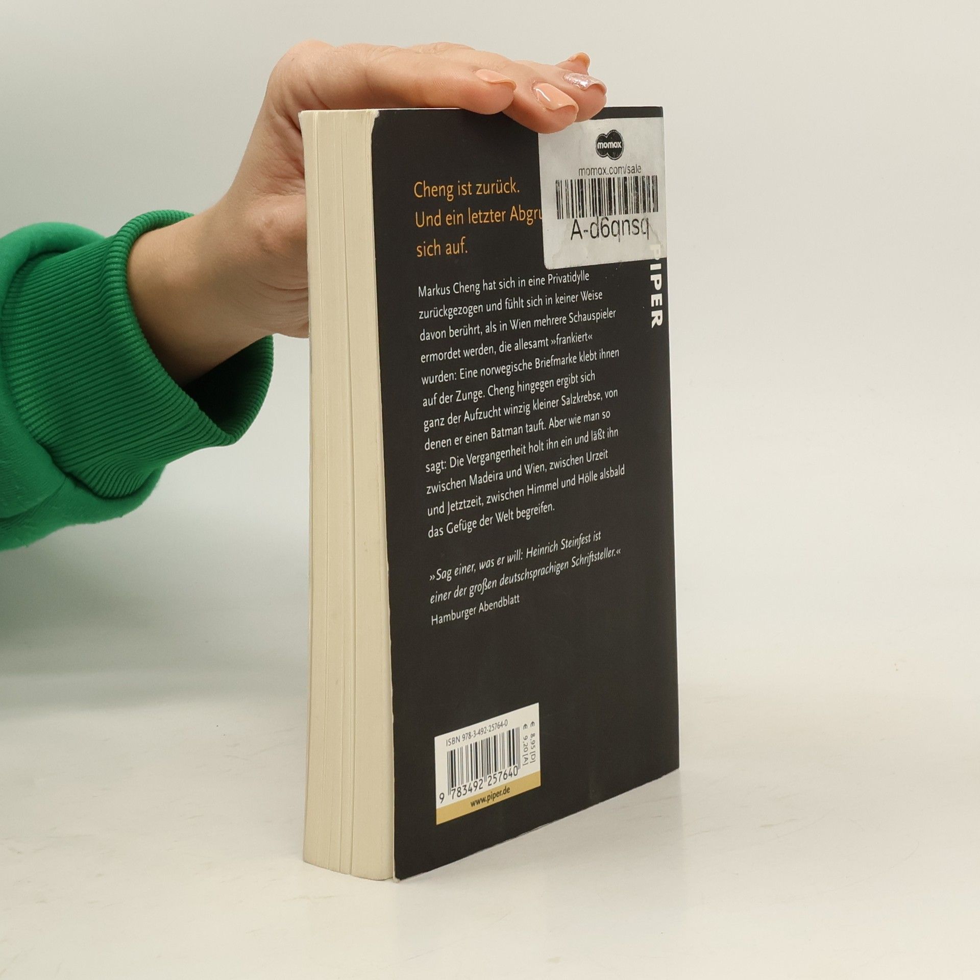 Markus Cheng hat sich in eine Privatidylle zurückgezogen und fühlt sich in keiner Weise davon berührt, als in Wien mehrere Schauspieler ermordet werden, die allesamt »frankiert« wurden: Eine norwegische Briefmarke klebt ihnen auf der Zunge. Cheng hingegen ergibt sich ganz der Aufzucht winzig kleiner Salzkrebse, von denen er einen Batman tauft. Aber wie man so sagt: Die Vergangenheit holt ihn ein und lässt ihn zwischen Madeira und Wien, zwischen Urzeit und Jetztzeit, zwischen Himmel und Hölle alsbald das Gefüge der Welt begreifen.