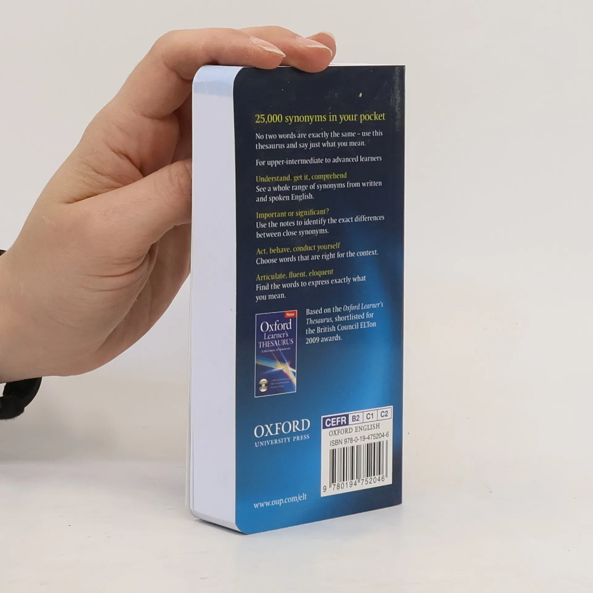 Up to 12 synonyms given for each of 5,000 key words Different terms are clearly marked, for example, British/American, formal/informal, approving or disapproving 100s of notes help identify the exact differences between pairs of synonyms Patterns and collocations help learners use the synonyms in context