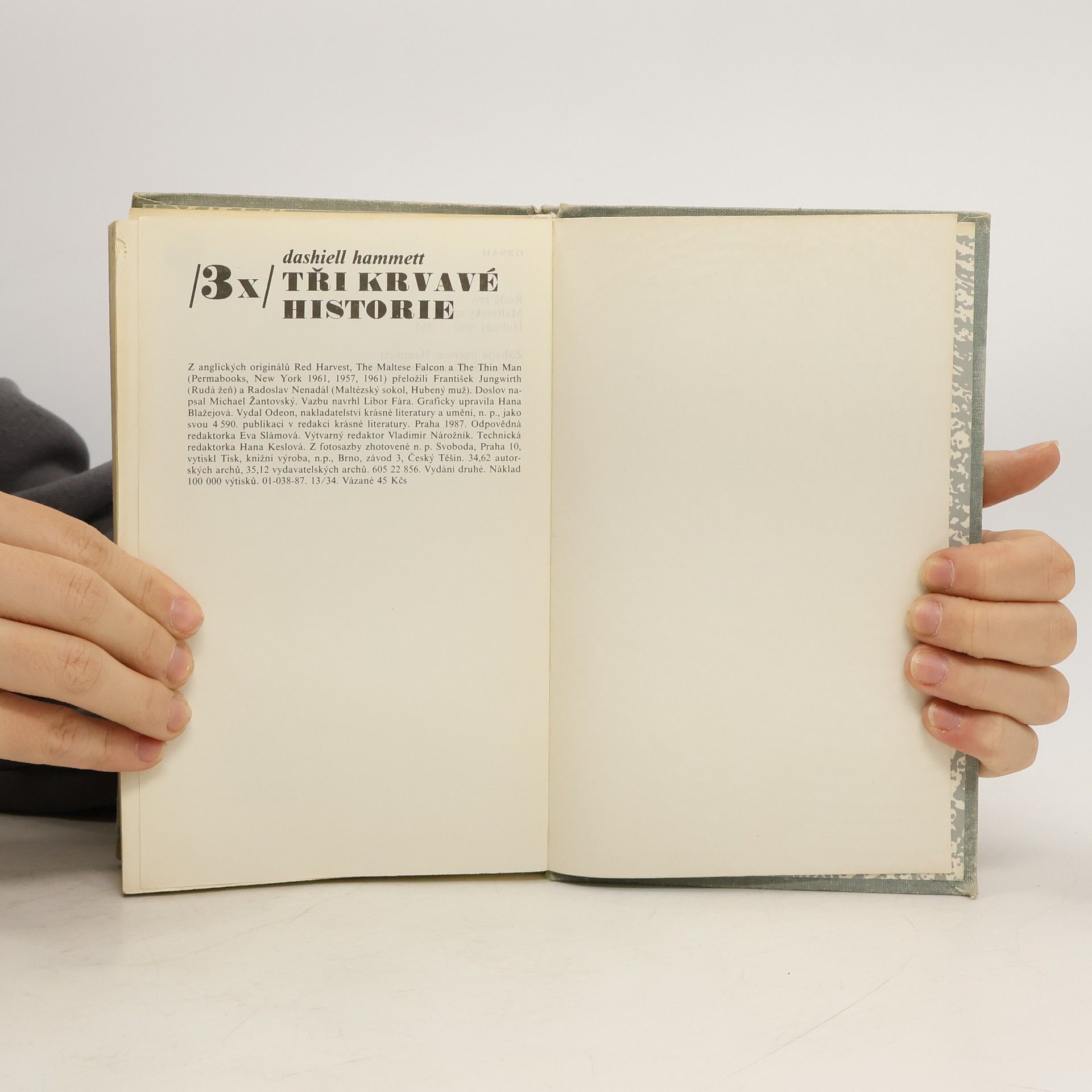 Kniha obsahuje tři případy : 1. Rudá žeň - přeložil František Jungwirth. 2. Maltézský sokol - přeložil Radoslav Nenadál. 3. Hubený muž - přeložil Radoslav Nenadál. Doslov „Záhada jménem Hammett“ napsal Michael Žantovský. Vydání druhé.