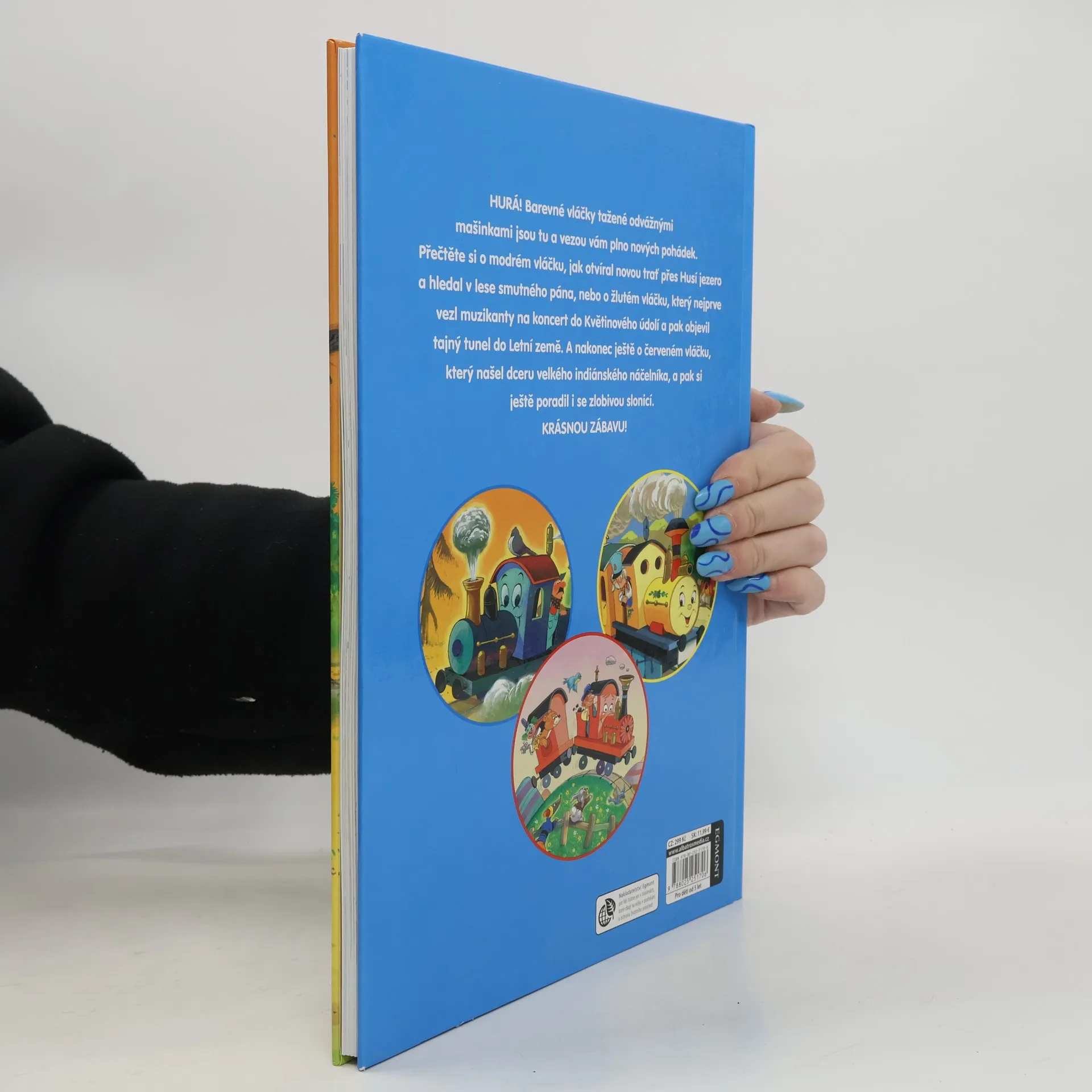 Knížka o veselých vláčcích v retro stylu Hurá! Barevné vláčky tažené odvážnými mašinkami jsou tu a vezou vám plno nových pohádek. Přečtěte si o modrém vláčku, jak otvíral novou trať přes Husí jezero a hledal v lese smutného pána, nebo o žlutém vláčku, který nejprve vezl muzikanty na koncert do Květinového údolí a pak objevil tajný tunel do Letní země. A nakonec ještě o červeném vláčku, který našel dceru velkého indiánského náčelníka a pak si ještě poradil i se zlobivou slonicí.