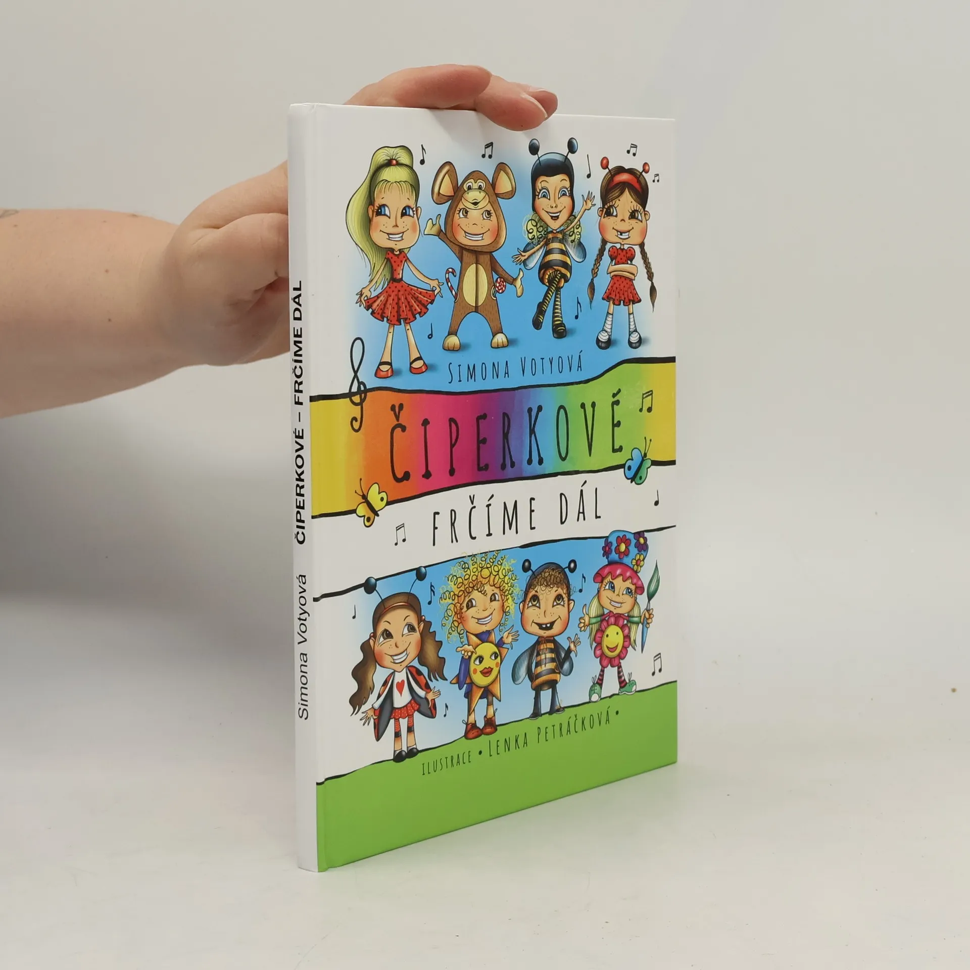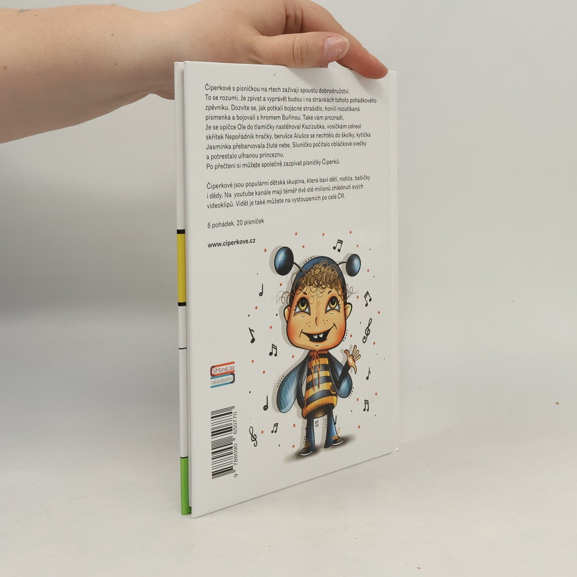 Pohádkový zpěvník Čiperkové s písničkou na rtech zažívají spoustu dobrodružství. To se rozumí, že zpívat a vyprávět budou i na stránkách tohoto pohádkového zpěvníku. Dozvíte se, jak potkali vystrašené strašidlo, honili rozutíkaná písmenka a bojovali s hromem Buřinou. Také vám prozradí, že se opičce Ole do tlamičky nastěhoval Kazizubka, vosičkám odnesl skřítek Nepořádník hračky, berušce Alušce se nechtělo do školky, kytička Jasmínka přebarvovala žluté nebe, Sluníčko počítalo obláčkové ovečky a potrestalo ulhanou princeznu. Po povídání si můžete společně zazpívat písničky Čiperků. Čiperkové jsou populární dětská kapela, která baví děti, rodiče, babičky i dědy. Na youtube kanále mají téměř dvě stě milionů zhlédnutí svých videoklipů. Vidět je také můžete na vystoupeních po celé ČR. Kniha obsahuje 8 pohádek a 20 písniček včetně not.