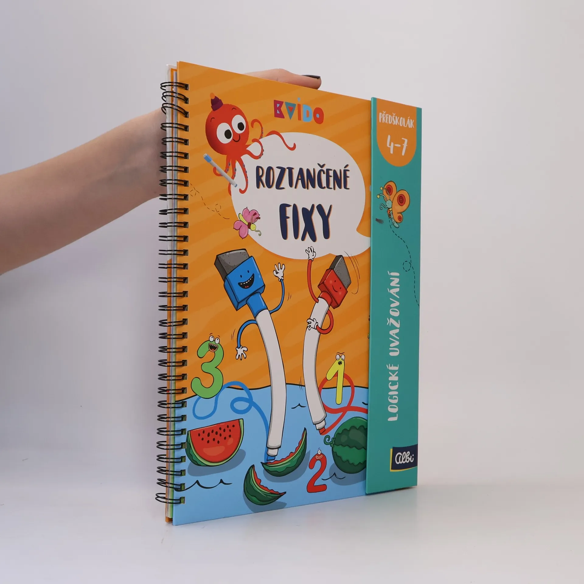 Roztančené fixy jsou interaktivní grafomotorické sešity plné obrázků a aktivit s příběhy 2 barevných fixek, které učí Kvída a předškolní děti kreslit a psát a rozvíjet přitom jemnou motoriku a zrakové vnímání. Díky mazatelným fixům můžou děti sešity vyplňovat opakovaně a procvičovat si tak úkoly znovu a znovu. Každý sešit Roztančené fixy má 50 stran plných úkolů pro děti předškolního věku. Kroužková vazba a zavírání na magnet je vhodné i do batůžku na cesty. Nově obsahují fixy všech vydání gumové delfínky, které napomáhají správnému úchopu.