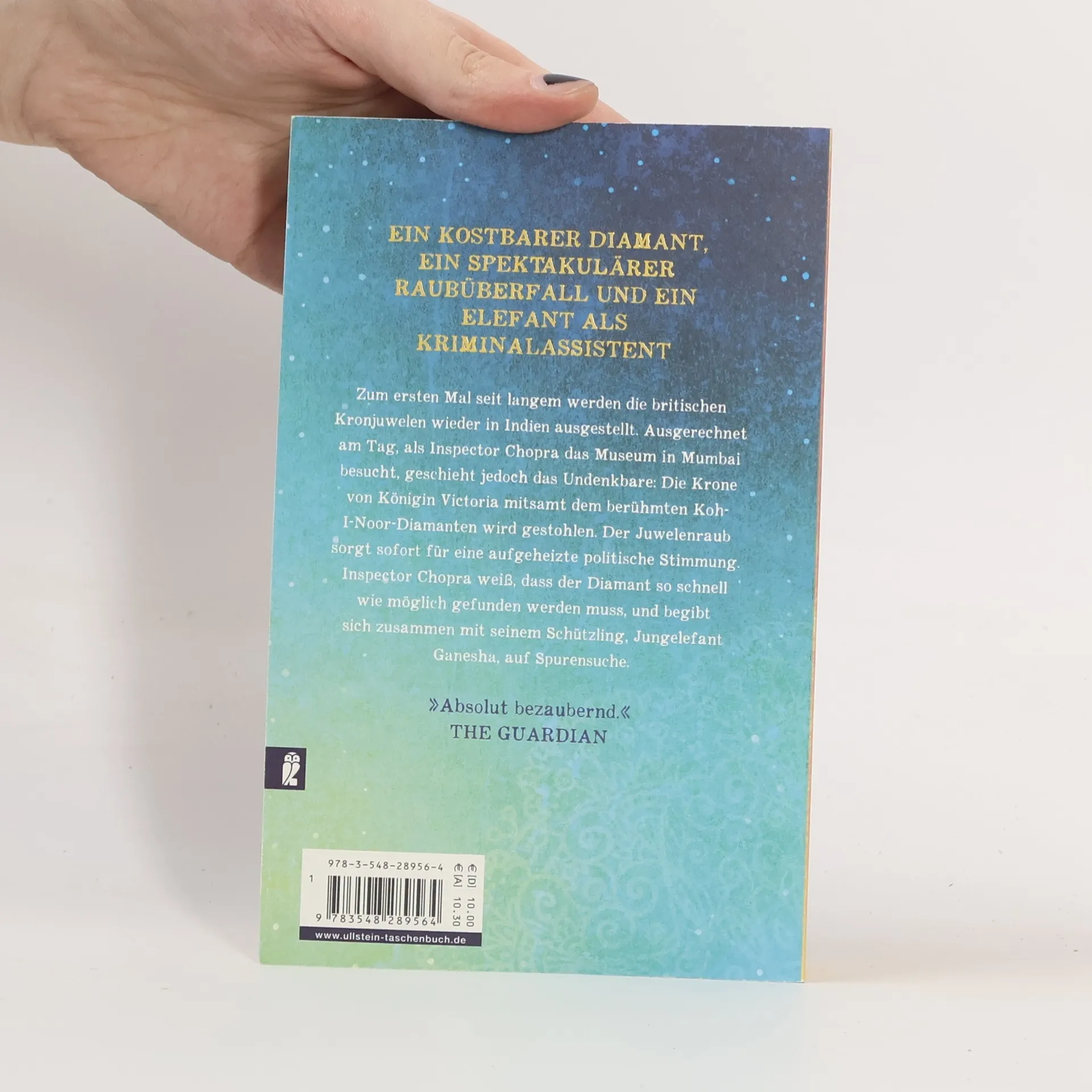 Inspector Chopra und Elefant Ganesha sind wohl das ungewöhnlichste Ermittlerduo der Welt Zum ersten Mal seit Langem werden die britischen Kronjuwelen wieder in Indien ausgestellt. Ausgerechnet am Tag, als Inspector Chopra das Museum in Mumbai besucht, geschieht jedoch das Undenkbare: Die Krone von Königin Victoria mitsamt dem berühmt-berüchtigten Koh-I-Noor-Diamanten wird gestohlen. Der Juwelenraub sorgt sofort für eine aufgeheizte politische Stimmung. Inspector Chopra weiß, dass der Diamant so schnell wie möglich gefunden werden muss und begibt sich zusammen mit seinem Schützling, Jungelefant Ganesha, auf Spurensuche.