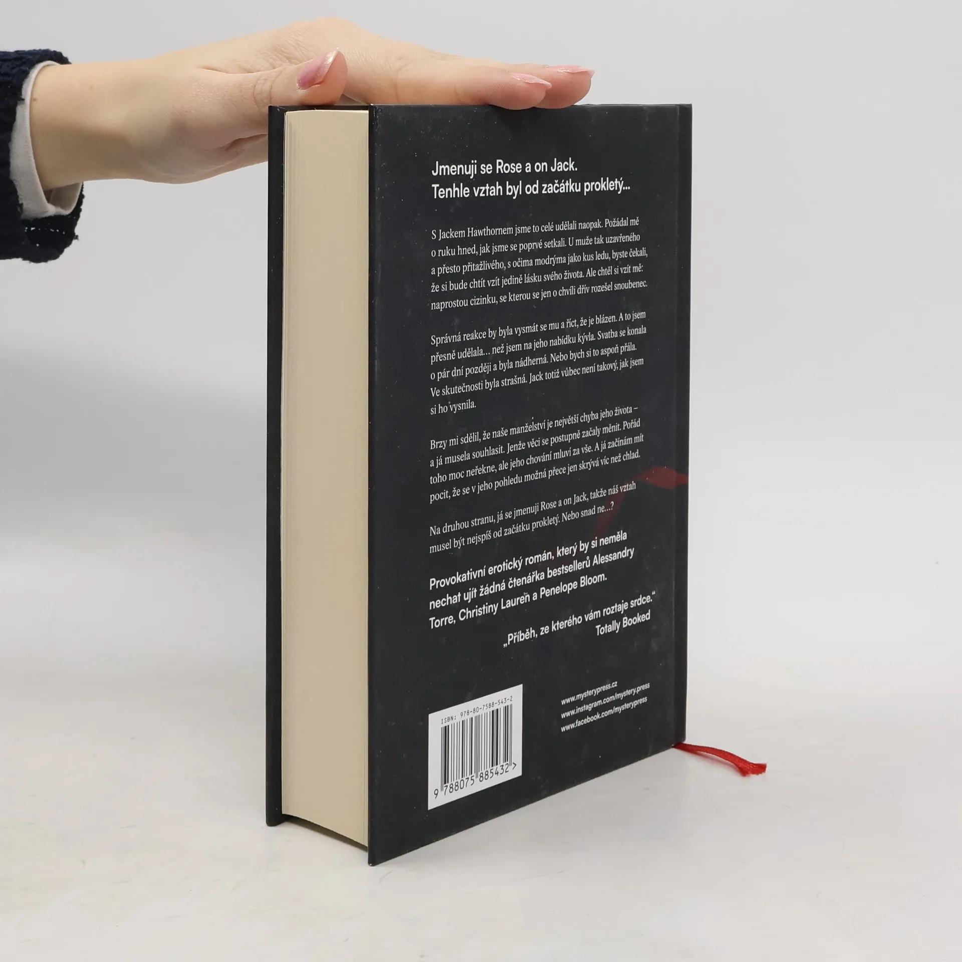 JMENUJI SE ROSE A ON JACK. TENHLE VZTAH BYL OD ZAČÁTKU PROKLETÝ S Jackem Hawthornem jsme to celé udělali naopak. Požádal mě o ruku hned, jak jsme se poprvé setkali. U muže tak uzavřeného a přesto přitažlivého, s očima modrýma jako kus ledu, byste čekali, že si bude chtít vzít jedině lásku svého života. Ale chtěl si vzít mě: naprostou cizinku, se kterou se jen o chvíli dřív rozešel snoubenec. Správná reakce by byla vysmát se mu a říct, že je blázen. A to jsem přesně udělala než jsem na jeho nabídku kývla. Svatba se konala o pár dní později a byla nádherná. Nebo bych si to aspoň přála. Ve skutečnosti byla strašná. Jack totiž vůbec není takový, jak jsem si ho vysnila. Brzy mi sdělil, že naše manželství je největší chyba jeho života – a já musela souhlasit. Jenže věci se postupně začaly měnit. Pořád toho moc neřekne, ale jeho chování mluví za vše. A já začínám mít pocit, že se v jeho pohledu možná přece jen skrývá víc než chlad. Na druhou stranu, já se jmenuji Rose a on Jack, takže náš vztah musel být nejspíš od začátku prokletý. Nebo snad ne? _____ Provokativní erotický román, který by si neměla nechat ujít žádná čtenářka bestsellerů Alessandry Torre, Christiny Lauren a Penelope Bloom. „Příběh, ze kterého vám roztaje srdce.“ – TOTALLY BOOKED