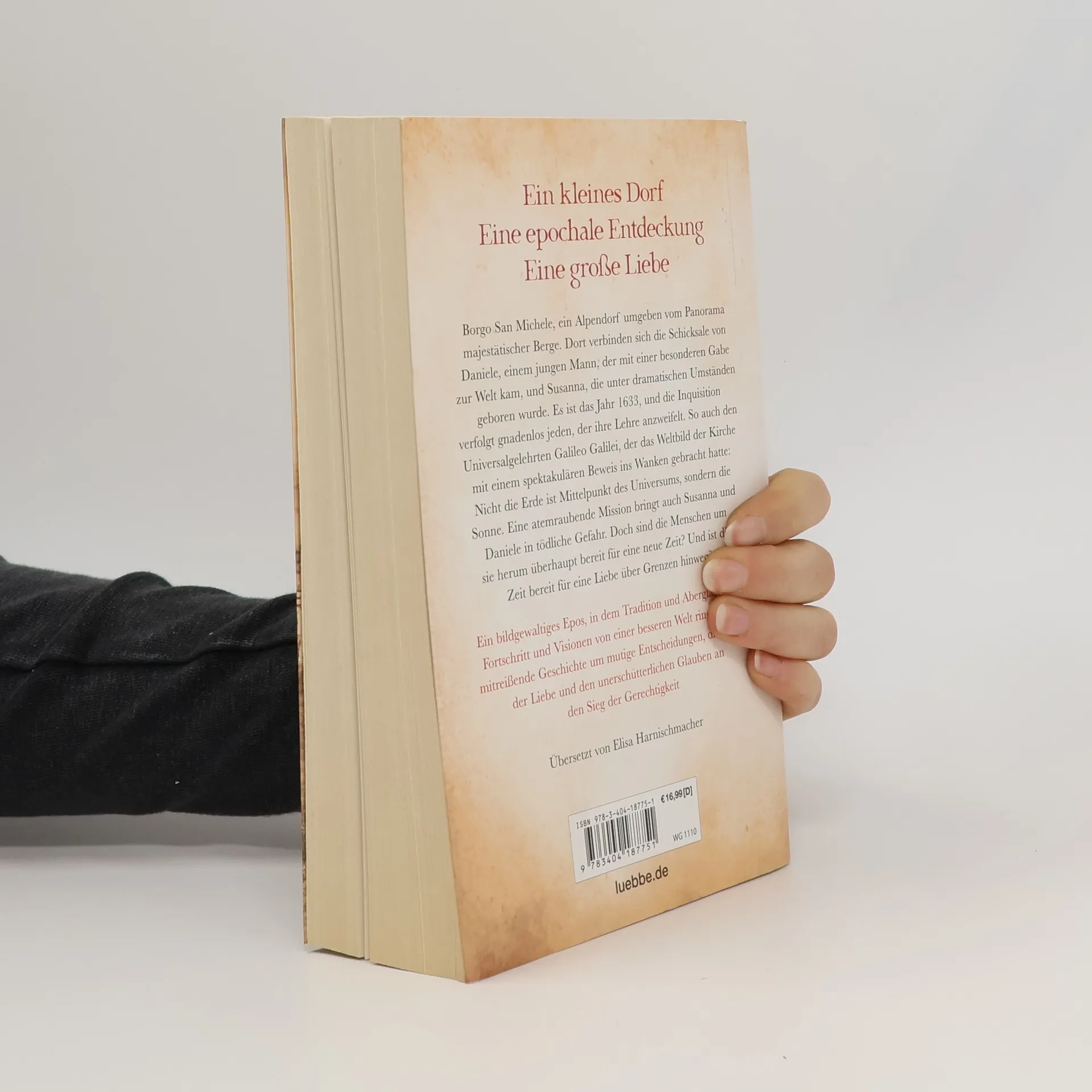 In einem kleinen Alpendorf, umgeben von majestätischen Bergen, entfaltet sich die Geschichte von Daniele, einem jungen Mann mit einer besonderen Gabe, und Susanna, die unter dramatischen Umständen geboren wurde. Im Jahr 1633 wird die Inquisition zur Bedrohung für alle, die ihre Lehren in Frage stellen, einschließlich des Universalgelehrten Galileo Galilei, der mit seinem Beweis, dass die Sonne das Zentrum des Universums ist, das Weltbild der Kirche erschüttert hat. Eine gefährliche Mission bringt Susanna und Daniele in Lebensgefahr. Doch sind die Menschen um sie bereit für den Wandel? Und ist die Zeit reif für eine Liebe, die Grenzen überwindet? Dieses bildgewaltige Epos thematisiert den Konflikt zwischen Tradition und Aberglaube sowie Fortschritt und der Vision einer besseren Welt. Es erzählt von mutigen Entscheidungen, der Kraft der Liebe und dem unerschütterlichen Glauben an Gerechtigkeit. Die Erzählung fesselt von der ersten bis zur letzten Seite und zeigt meisterhaft die Angst der Menschen vor Neuem, ihren Aberglauben und den Einfluss der Inquisition. In zwei parallelen Erzählsträngen entwickelt sich die Geschichte bis zu einem dramatischen Ende und hält die Leser bis zur letzten Seite in Atem.
