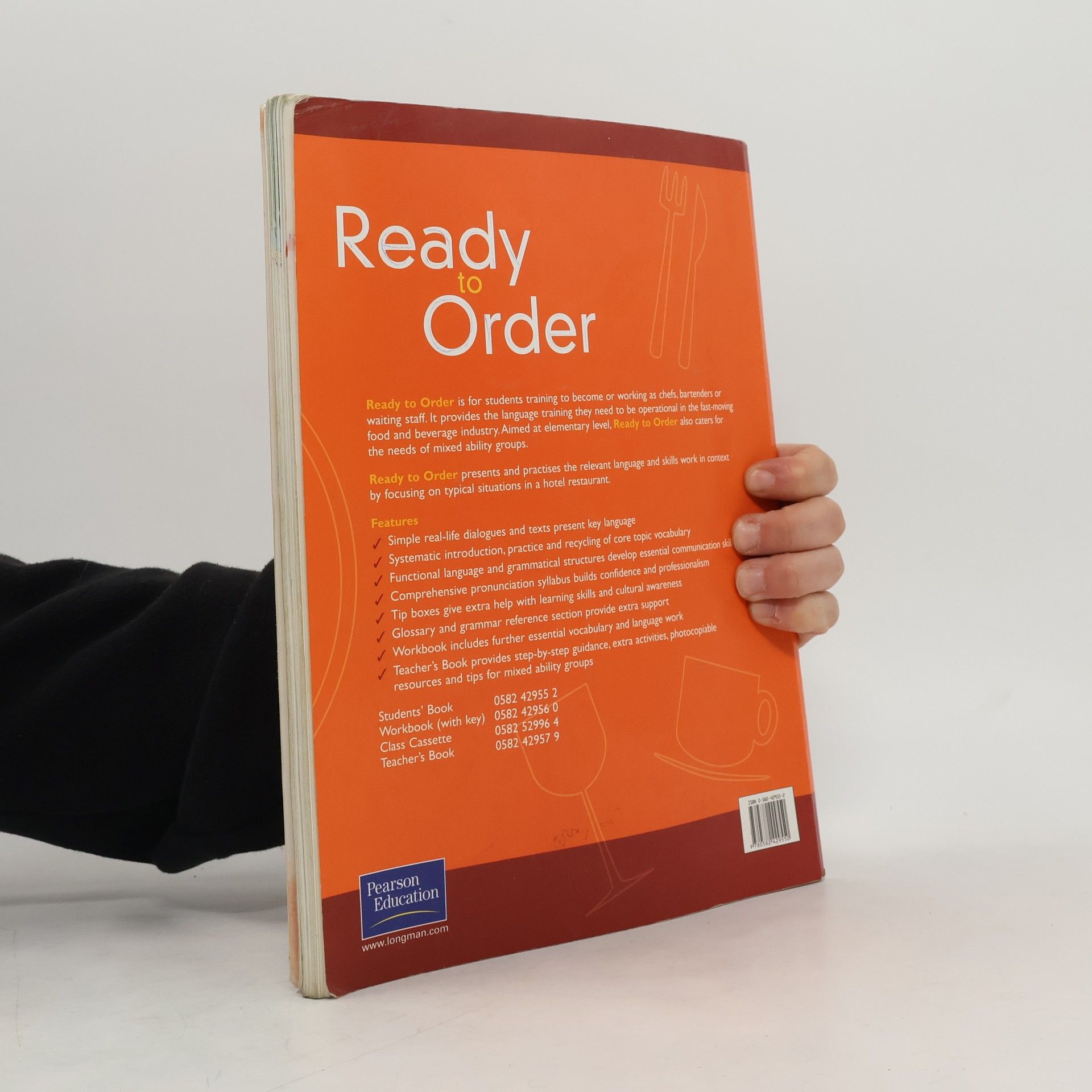 Set in the restaurant of a fictional London hotel, "Ready to Order" provides language training for students working in the challenging food and beverage industry. The text s 12 units use the storyline and dialogues to present and practice basic functions, vocabulary, and grammar.Learning, culture, and language tips provide useful examples in context.Glossary includes all key vocabulary from the text plus other essential industry terms, designed for students to translate terms into their native language.An Audiocassette contains all the model dialogues used in the student coursebook.Teacher s Resource Book offers unit-by-unit support, activities for mixed-ability groups, photocopiable materials, and more."