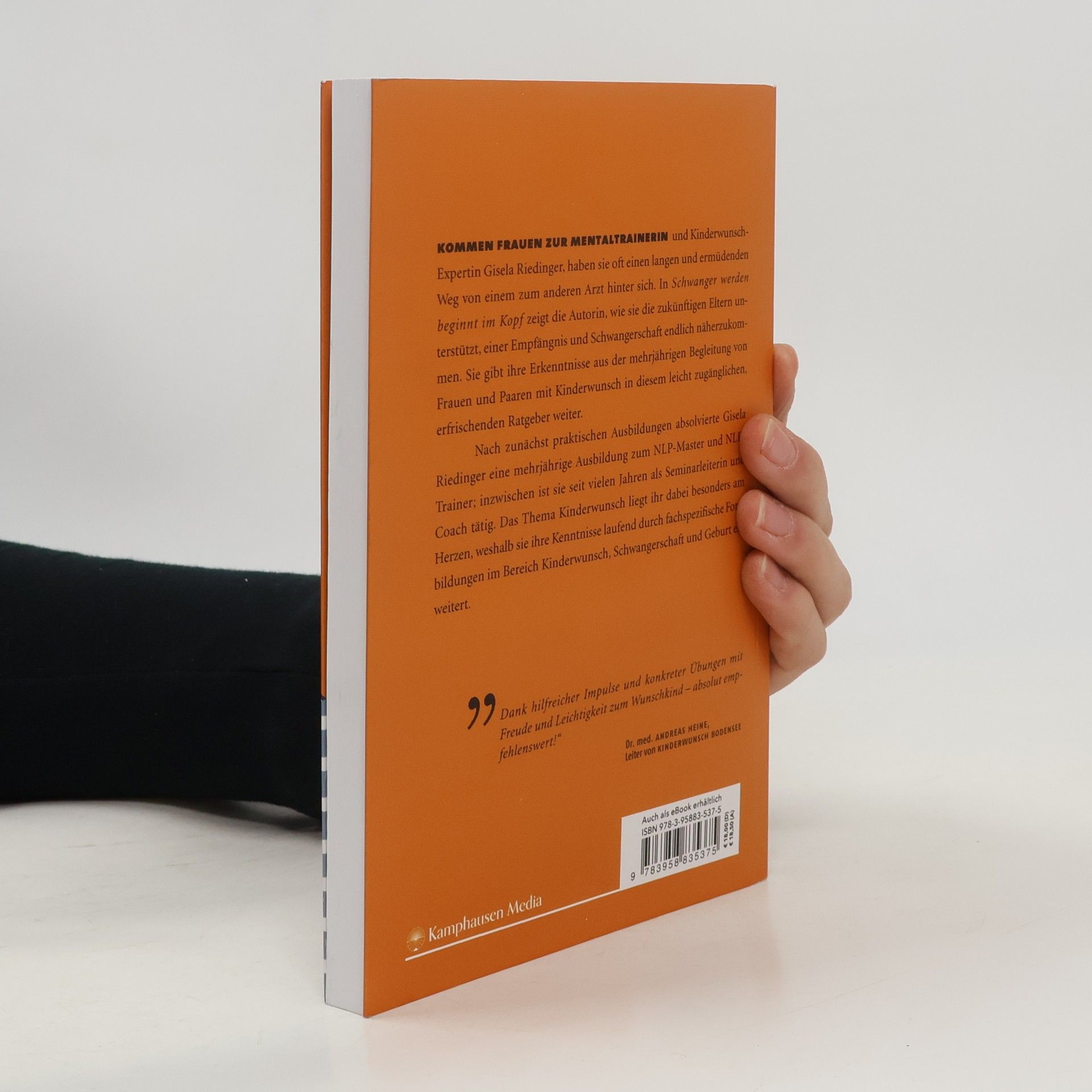 Schwanger werden ist Kopfsache. Immer mehr Paare mit Kinderwunsch haben Probleme schwanger zu werden. Dieses Buch soll Abhilfe schaffen und beim Elternwerden unterstützen. „Schwanger werden beginnt im Kopf“ erklärt die Zusammenhänge zwischen Körper, Geist und Seele in der angespannten Zeit des Wartens auf das Baby. Es ermöglicht den Leser*innen einen sofortigen Perspektivwechsel und enthält praktische Übungen, die die Chancen auf eine Schwangerschaft erhöhen. Durch den Fokus auf die psychosomatischen Blockaden und speziell auf die Wirkung unbewusster Glaubenssätze auf die Psyche der Frau ist der Ratgeber einzigartig. Ein Buch zur Selbsthilfe bei der Empfängnis. Ein inspirierender Begleiter in der angespannten Baby-Wartezeit, der den Kopf frei macht für die Schwangerschaft und so beim schwanger werden unterstützt.