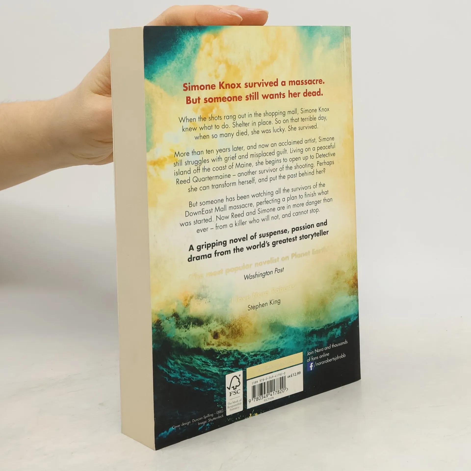 When the shots rang out in the shopping mall, Simone Knox knew what to do. Shelter in place. That's what they taught you to do in the event of a mass shooting. So on that terrible, hot summer day in 2005, Simone was lucky. She escaped death. But she would never be the same again. More than ten years later, Simone still struggles with grief, trauma and the misplaced guilt of a survivor. She spends much of her time alone on Tranquility Island - a quiet, artistic community off the coast of Maine. But she is transforming - shaping herself the way she shapes her extraordinary and highly prized sculptures. As she heals herself, she opens up to Reed Quartermaine, who survived the shooting himself and has become a detective.But someone has been watching all the survivors of the DownEast Mall massacre. They have spent years perfecting a plan to finish what was started that day. Now that Reed and Simone have found each other, they are in more danger than they can possibly imagine - from a killer who will not, and cannot stop.