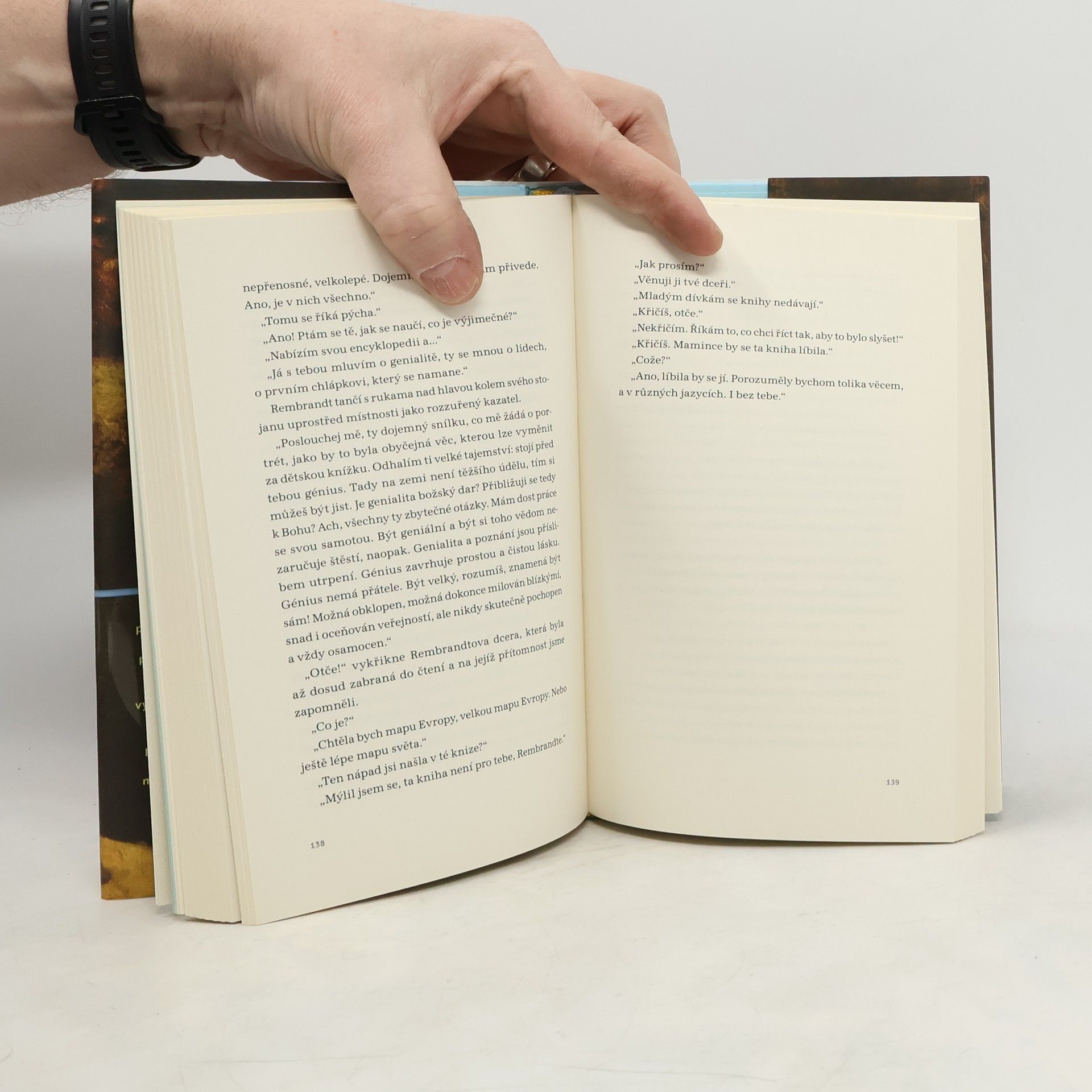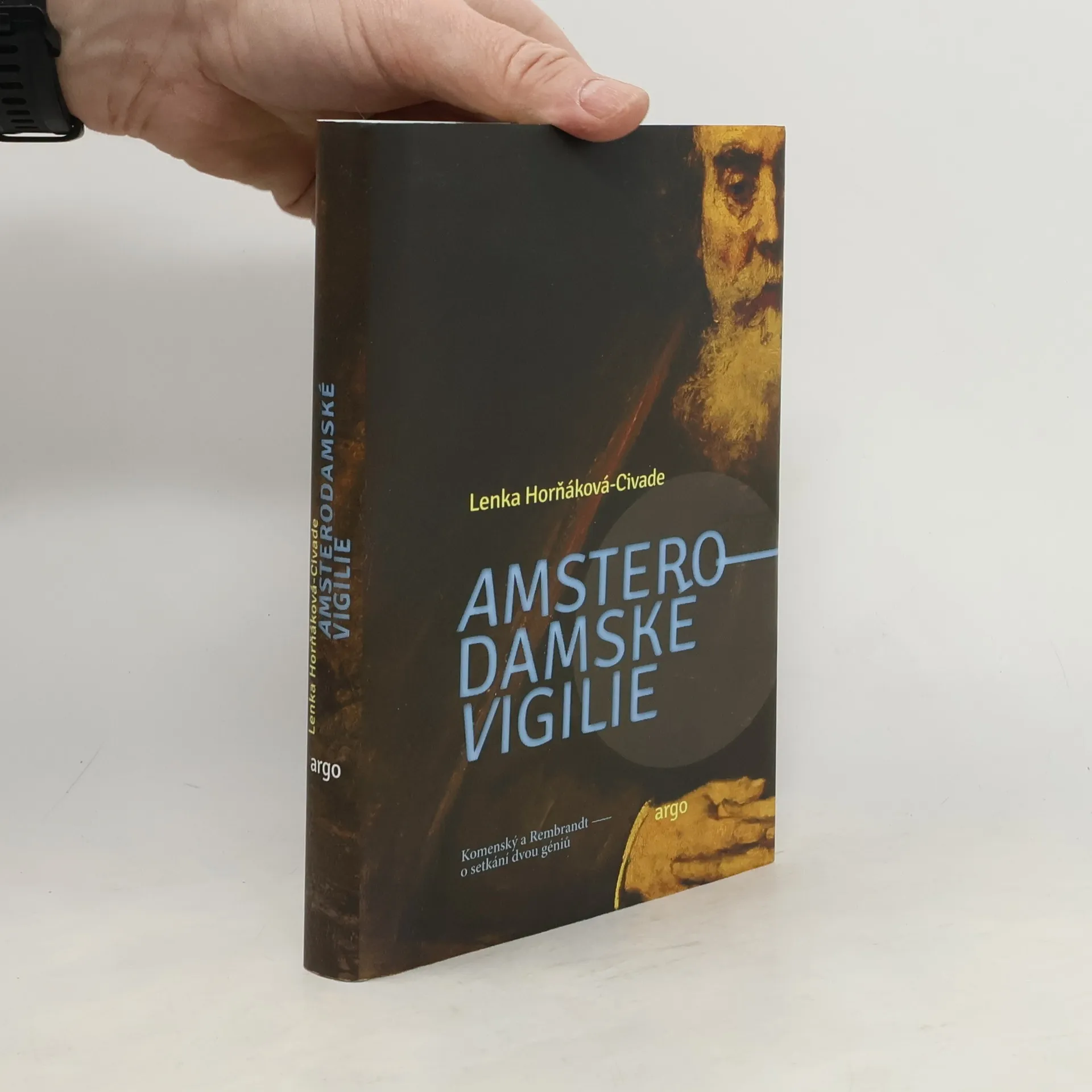 Amsterodam, rok 1656. Evropa se vzpamatovává z třicetileté války, která přímo či nepřímo vyhnala mnoho lidí z jejich domovů. Patřil k nim i kněz, učitel a filosof Jan Amos Komenský. Řízením osudu se po mnoha peripetiích a osobních tragédiích dostal do Amsterodamu ve stejné době, kdy v něm žil a tvořil světoznámý malíř Rembrandt van Rijn. Podle historických pramenů bydleli téměř v sousedství, lze tudíž předpokládat, že se museli znát. Ve florentské galerii Uffizi také visí Rembrandtův obraz starce, nápadně podobného právě J. A. Komenskému, a mnozí badatelé skutečně předpokládají, že jde o filosofův portrét.Z těchto dvou základních úvah vyšla Lenka Horňáková-Civade, když si představila, jak setkání těchto dvou výjimečných, ale velmi rozdílných mužů mohlo proběhnout, o čem si během nutných sezení při malování mohli povídat, v čem si mohli rozumět, nebo naopak být v rozporu, ale také jestli mohli jeden druhého v něčem ovlivnit.