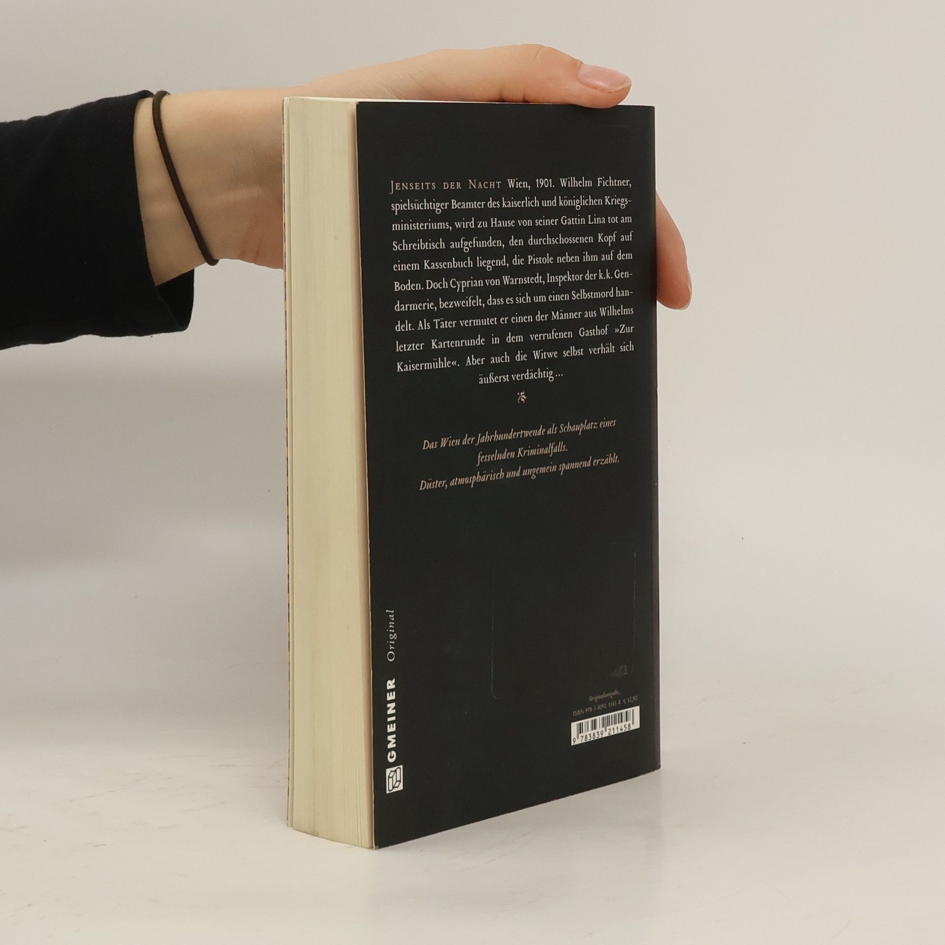 Wien, 1901. Wilhelm Fichtner, spielsüchtiger Beamter des kaiserlich-königlichen Kriegsministeriums, wird zu Hause von seiner Gattin Lina tot am Schreibtisch aufgefunden, den Kopf auf einem Kassenbuch liegend, die Pistole neben ihm auf dem Boden. Doch Cyprian von Warnstedt, Inspektor der k. k. Gendarmerie, bezweifelt, dass es sich um einen Selbstmord handelt. Als Täter vermutet er einen der Männer aus Wilhelms letzter Kartenrunde in dem verrufenen Gasthof „Zur Kaisermühle“. Aber auch die Witwe selbst verhält sich äußerst verdächtig …