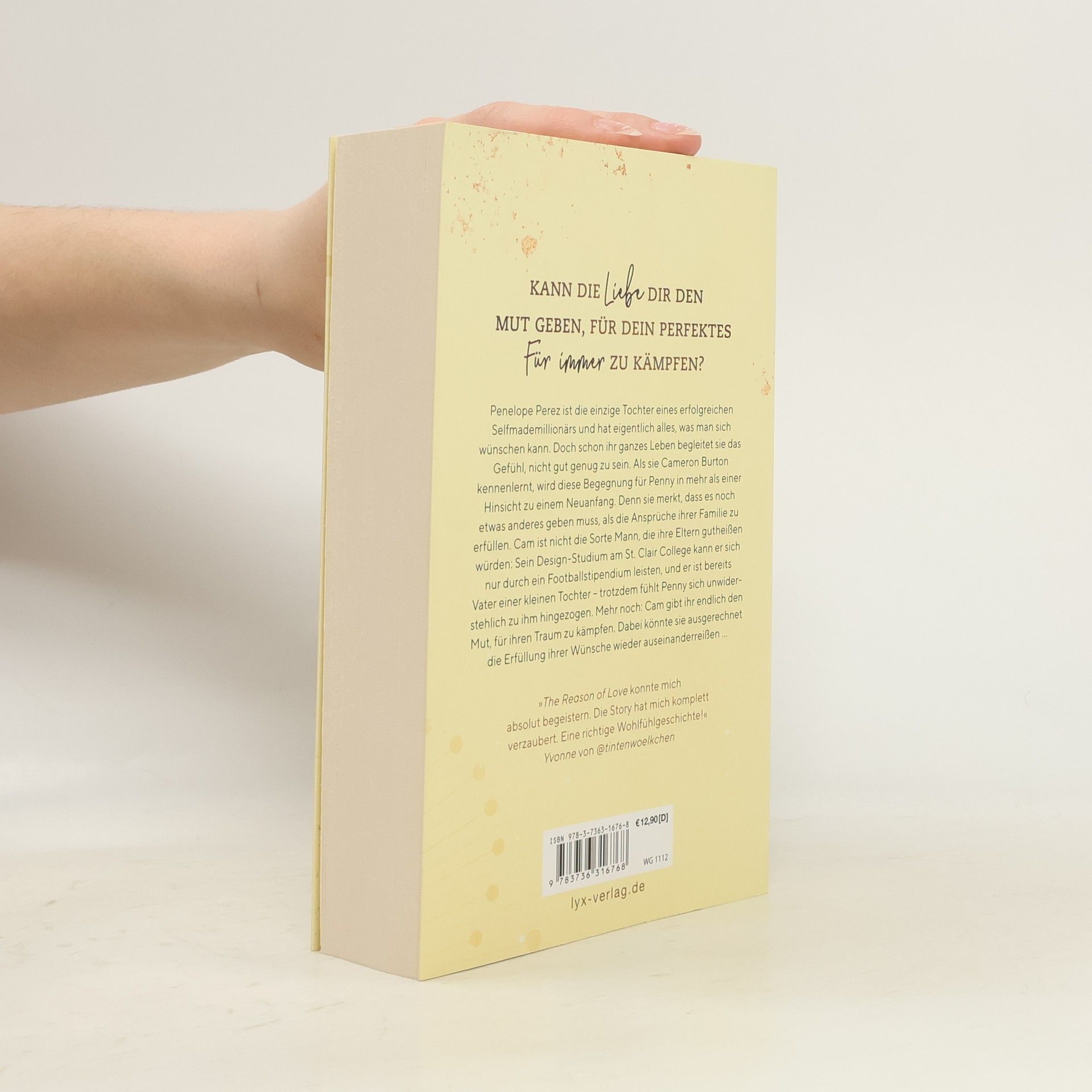 Kann die Liebe dir den Mut geben, für dein perfektes Für immer zu kämpfen? Penelope Perez ist die einzige Tochter eines erfolgreichen Selfmademillionärs und hat eigentlich alles, was man sich wünschen kann. Doch schon ihr ganzes Leben begleitet sie das Gefühl, nicht gut genug zu sein. Als sie Cameron Burton kennenlernt, wird diese Begegnung für Penny in mehr als einer Hinsicht zu einem Neuanfang. Denn sie merkt, dass es noch etwas anderes geben muss, als die Ansprüche ihrer Familie zu erfüllen. Cam ist nicht die Sorte Mann, die ihre Eltern gutheißen würden: Sein Design-Studium am St. Clair College kann er sich nur durch ein Footballstipendium leisten, und er ist bereits Vater einer kleinen Tochter - trotzdem fühlt Penny sich unwiderstehlich zu ihm hingezogen. Mehr noch: Cam gibt ihr endlich den Mut, für ihren Traum zu kämpfen. Dabei könnte sie ausgerechnet die Erfüllung ihrer Wünsche wieder auseinanderreißen ... „THE REASON OF LOVE konnte mich absolut begeistern. Die Story hat mich komplett verzaubert. Eine richtige Wohlfühlgeschichte!“ YVONNE von @TINTENWOELKCHEN Band 3 der ST.-CLAIR-CAMPUS-Reihe