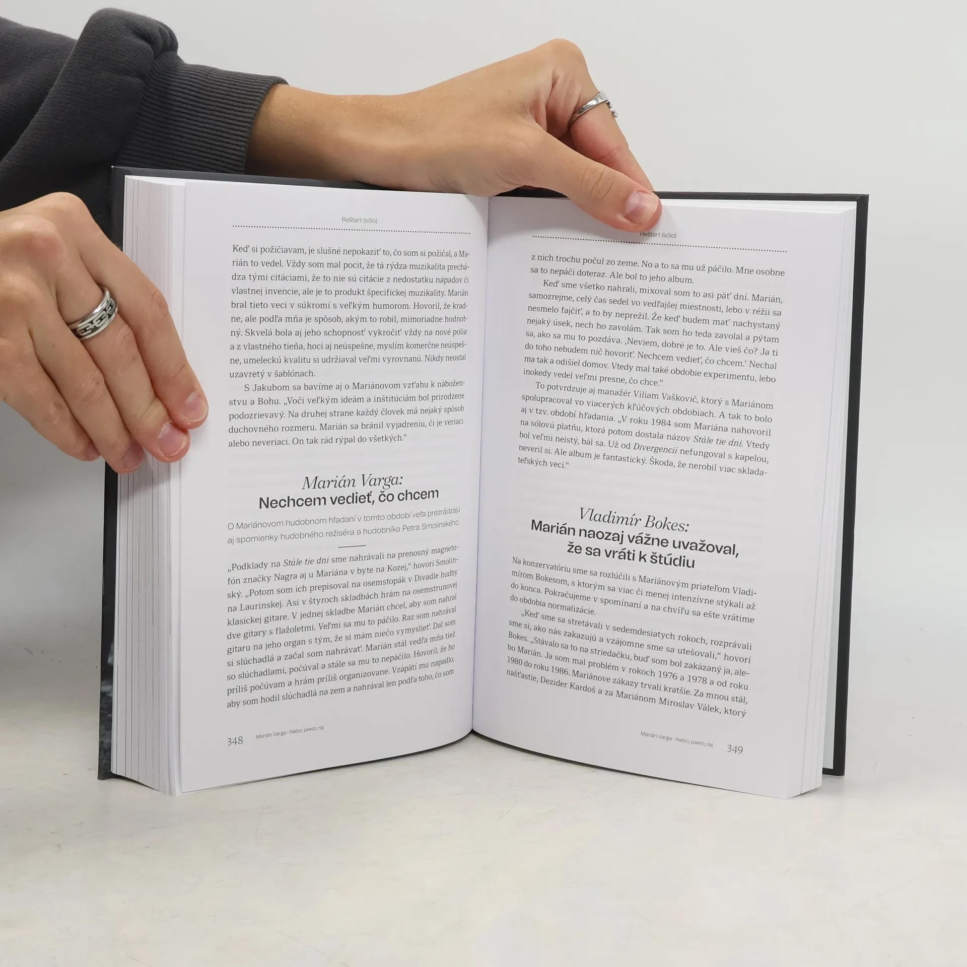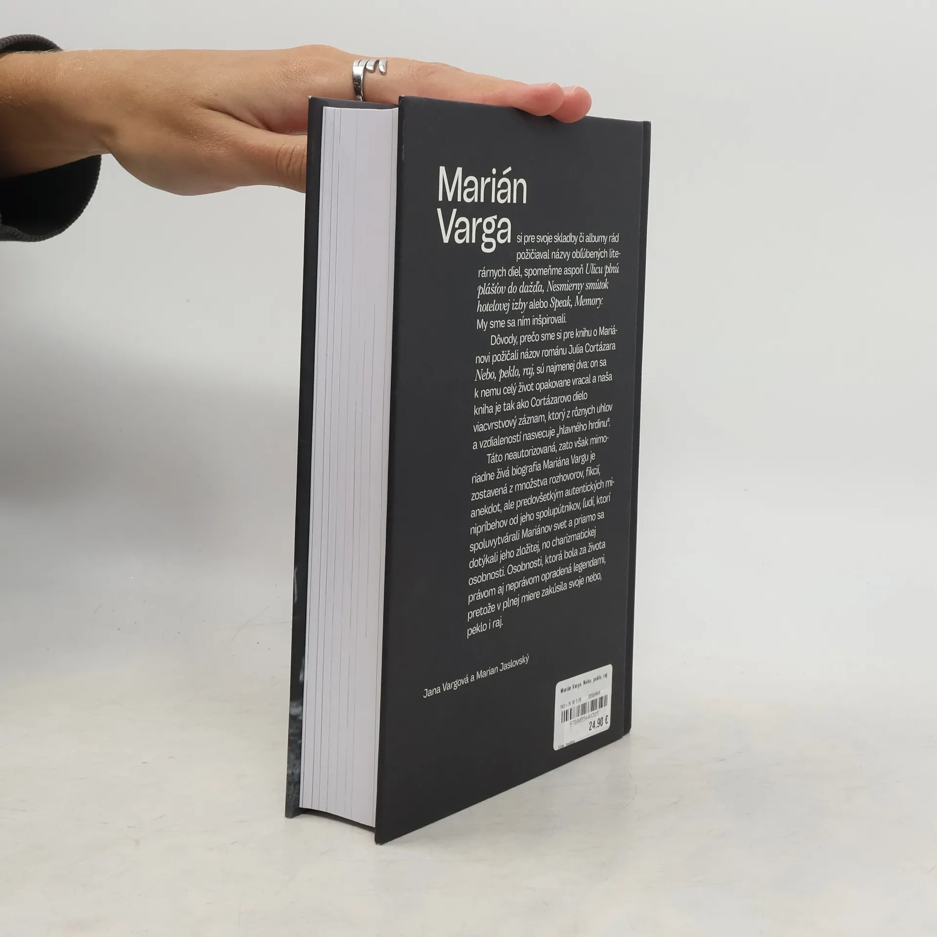 Kniha známeho publicistu a spisovateľa Mariana Jaslovského približuje osobnosť geniálneho hudobníka Mariána Vargu tak blízko, ako sa len dá. Jaslovský spolu s Vargovou manželkou Janou vyspovedali asi tridsiatku priateľov, členov rodiny a spolupracovníkov z Vargovho najbližšieho okruhu. Ich spomienky boli v mnohých prípadoch prekvapujúce aj pre Janu - najbližšiu Mariánovu osobu. Biografiu v duchu „oral history" ilustrujú aj zaujímavé faksimile a fotografie, ktoré neboli nikde uverejnené. Knižka organicky dopĺňa Jaslovského monografiu Collegium Musicum.