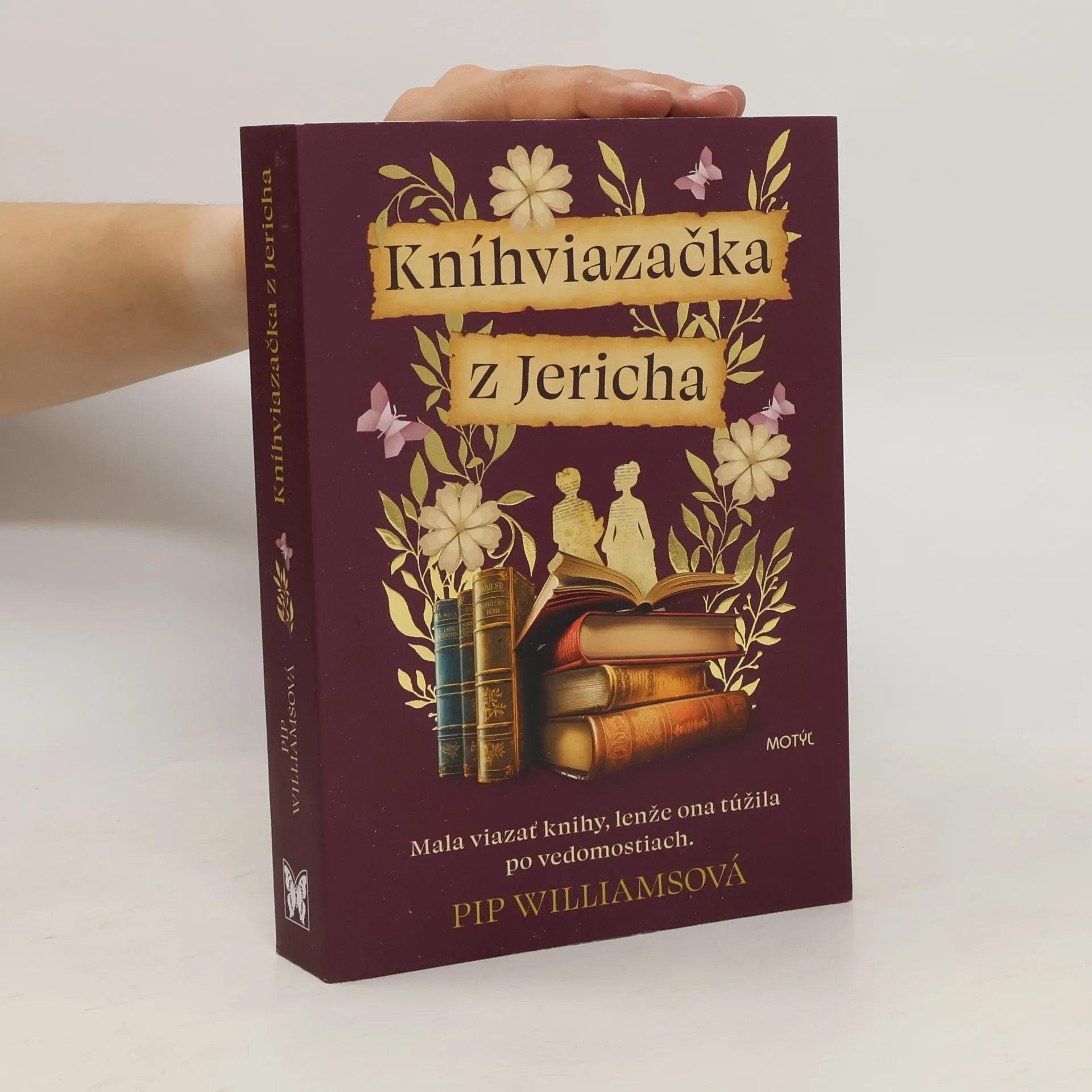 Mladá žena z Veľkej Británie pracuje ako kníhviazačka, keď sa jej naskytne šanca získať poznanie i lásku, no prvá svetová vojna jej prevráti život naruby. Píše sa rok 1914 a keďže prvá svetová vojna vzala Británii mladých mužov do boja, chod krajiny musia udržiavať ženy. Medzi ne patria aj Peggy a Maude, dvojčatá, ktoré žijú v Oxforde na úzkom riečnom člne a pracujú v kníhviazačskej dielni v univerzitnom vydavateľstve. Ambiciózna a inteligentná Peggy väčšinu svojho života počúva, že jej prácou je knihy viazať, nie ich čítať. No keď ich strany falcuje a ukladá na kôpky, v myšlienkach lieta na Walton Street, kde študentky Somervillu majú na dosah celú knižnicu. Maude, naopak, netúži po ničom inom, než už má. Chce tráviť dni falcovaním strán kníh spolu s ostatnými kníhviazačkami. Je zvláštna, no zraniteľná, a Peggy cíti, že na ňu musí dohliadať. Utečenci prichádzajúci z vojnou poznačených miest v Belgicku rozčeria hladiny miestnej komunity a zasiahnu aj do života dvoch sestier. Peggy začína vnímať, že na ňu môže čakať aj iná budúcnosť. Taká, v ktorej by sa mohla vzdelávať a využívať aj svoj intelekt, nielen svoje ruky. Keď však vojna a choroba prevrátia jej svet hore nohami, hrozí, že jej láska k belgickému vojakovi (a aj s ňou spojené záväzky) bude musieť ustúpiť. Román Kníhviazačka z Jericha je o vzdelaní. O tom, kto ho poskytuje, kto má k nemu prístup a o tom, čo všetko sa počas tohto procesu stráca. Podobne ako v medzinárodnom bestselleri Slovník stratených slov, Pip Williamsová aj v tejto knihe ženskými očami premyslene odhaľuje ďalší, sotva vnímaný kúsok.