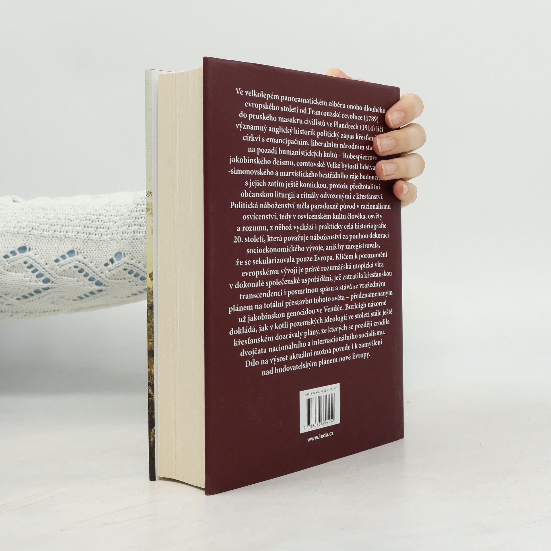 Ve velkolepém panoramatickém záběru onoho dlouhého evropského století od Francouzské revoluce (1789) do pruského masakru civilistů ve Flandrech (1914) líčí významný anglický historik politický zápas křesťanských církví s emancipačním, liberálním národním státem na pozadí humanistických kultů – Robespierrova jakobínského deismu, comtovské Velké bytosti lidstva, saint-simonovského a marxistického beztřídního ráje budoucnosti – s jejich zatím ještě komickou, protože předtotalitní občanskou liturgií a rituály odvozenými z křesťanství. Politická náboženství měla paradoxně původ v racionalismu osvícenství, tedy v osvícenském kultu člověka, osvěty a rozumu, z něhož vychází i prakticky celá historiografie 20. století, která považuje náboženství za pouhou dekoraci socioekonomického vývoje, aniž by zaregistrovala, že se sekularizovala pouze Evropa. Klíčem k porozumění evropskému vývoji je právě rozumářská utopická víra v dokonalé společenské uspořádání, jež zatratila křesťanskou transcendenci i posmrtnou spásu a stává se vražedným plánem na totální přestavbu tohoto světa – předznamenaným už jakobínskou genocidou ve Vendeé. Burleigh názorně dokládá, jak v kotli pozemských ideologií ve století stále ještě křesťanském dozrávaly plány, z nichž se později zrodila dvojčata nacionálního a internacionálního socialismu. Dílo na výsost aktuální možná povede i k zamyšlení nad budovatelským plánem nové Evropy.