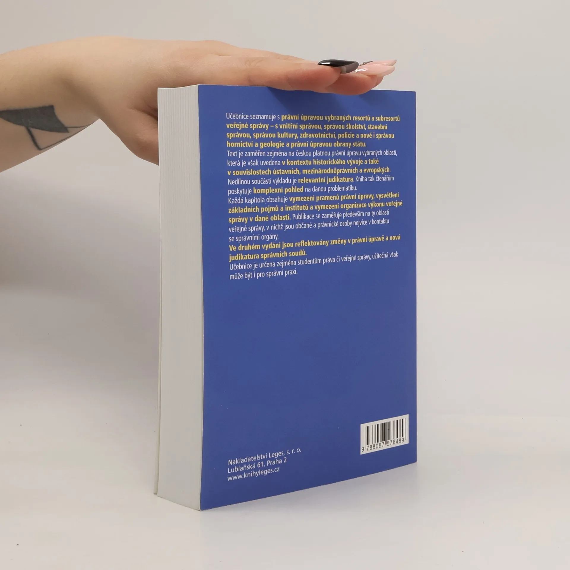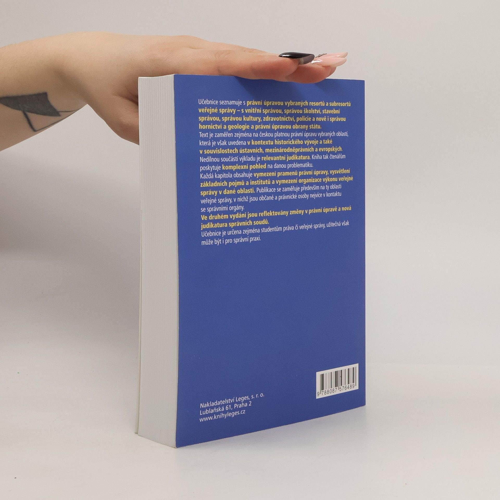 Učebnice seznamuje s právní úpravou vybraných resortů a subresortů veřejné správy – s vnitřní správou, správou školství, kultury, zdravotnictví a policie a stavební správou. Nedílnou součástí výkladu je relevantní judikatura.