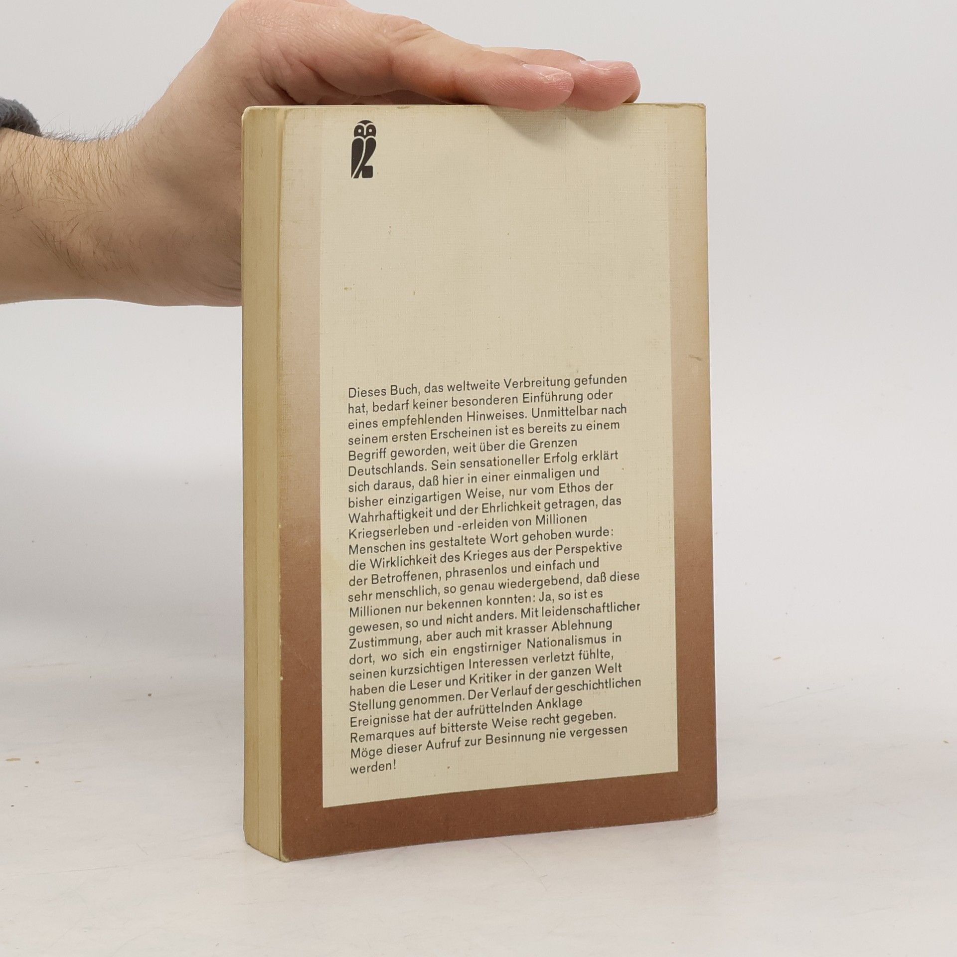 Es ist das beste Buch, welches es über den ersten Weltkrieg gibt. Es zeigt wie es wirklich war und welchen Leid sie ertragen mussten