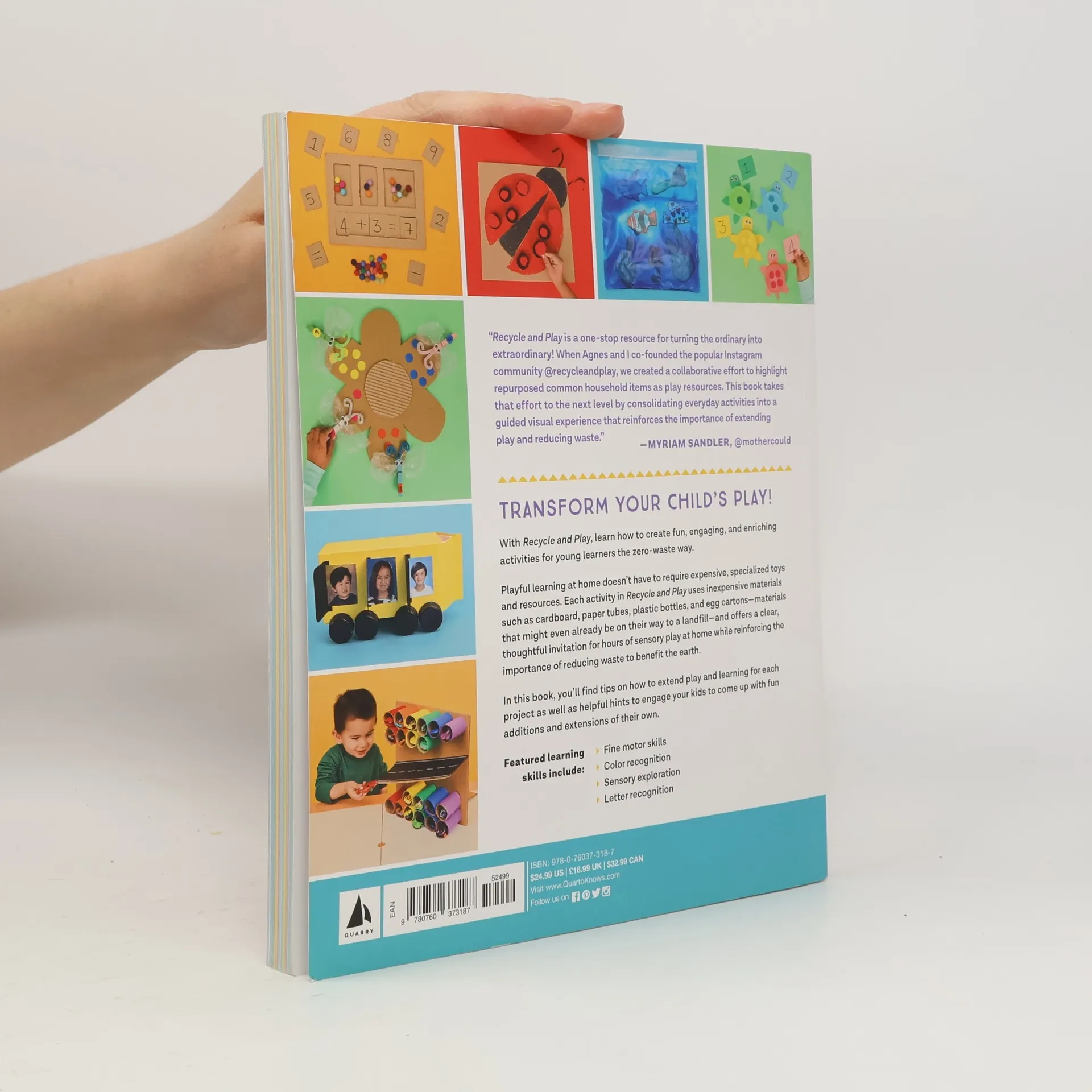 Have fun, create, learn, and help the planet with the young kids in your life through 50 colorful, enriching activities made from stuff you already have.With Recycle and Play , learn how to transform cardboard, bubble wrap, lids, containers, egg cartons, and other things that might otherwise be headed to a landfill into hours of engaging play at home . The fun, process-oriented projects invite children to be creative, explore senses, develop skills, and discover how things work, all while reinforcing the importance of reducing waste as part of a sustainable lifestyle .In this book, you’ll find tips on how to extend play and learning for each project as well as helpful hints to engage your kids to come up with fun additions and extensions of their own.While each of the projects includes clear step-by-step instructions and materials lists , you should feel free to adjust to your child’s interests and the materials you have on hand.Organized by the type of material used, the zero-waste projects Bond with your child, help them learn through play, and instill a lifelong respect for the environment with Recycle and Play .
