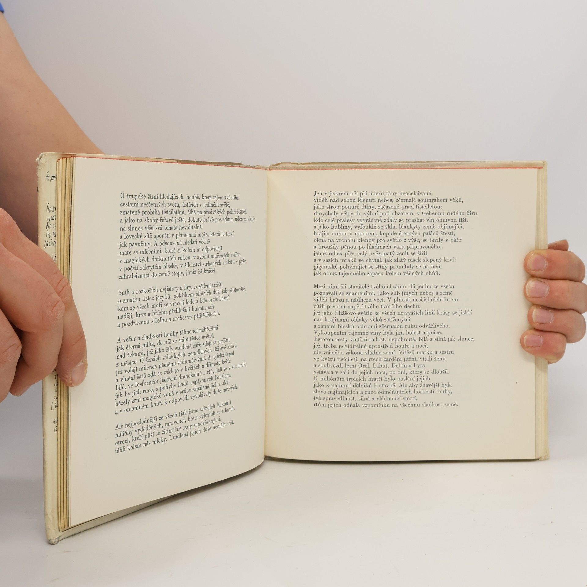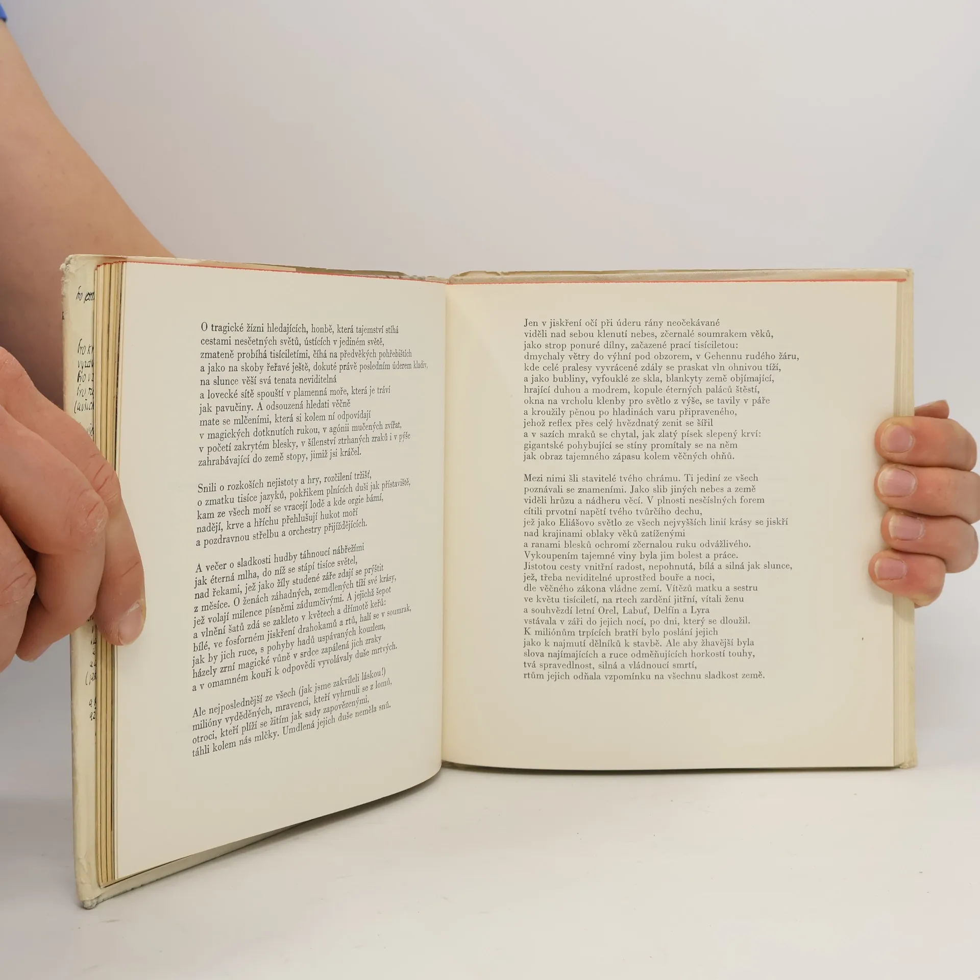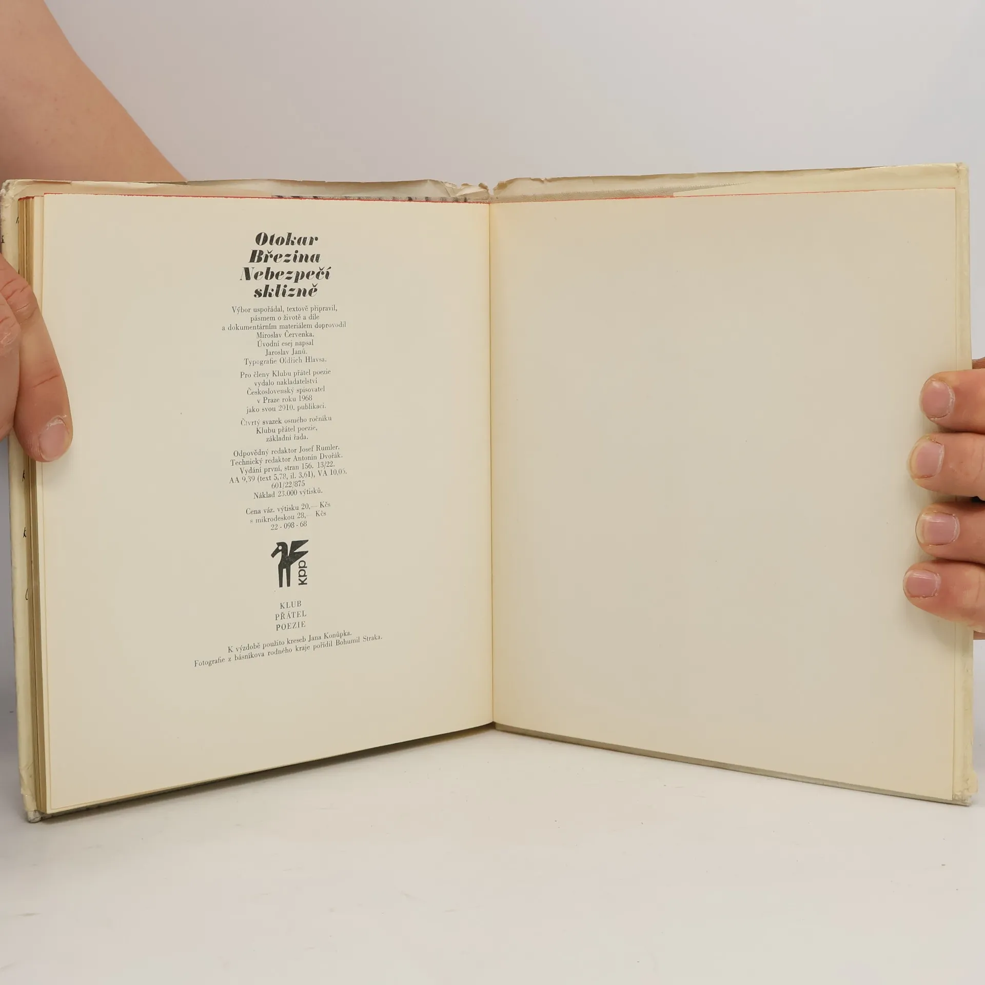 Tematicky řazený výbor (Elegie, Modlitby, Postavy, Pohyblivé obrazy) z pěti autorových básnických sbírek a torsa šesté knihy básní, doplněný esejem Nebezpečí sklizně a chronologicky řazenými životopisnými daty, publikačníčinností a úryvky z dopisů Anně Pammrové, F. Bílkovi, J. Demlovi, F. Bauerovi, F.X. Šaldovi a jiným uměleckým přátelům a významným osobnostem. Část nákladu vydaná s mikrodeskou (recitace básní v podání V. Brabce a J. Kačera s doplňující hudbou úryvků Sukovy Pohádky léta).