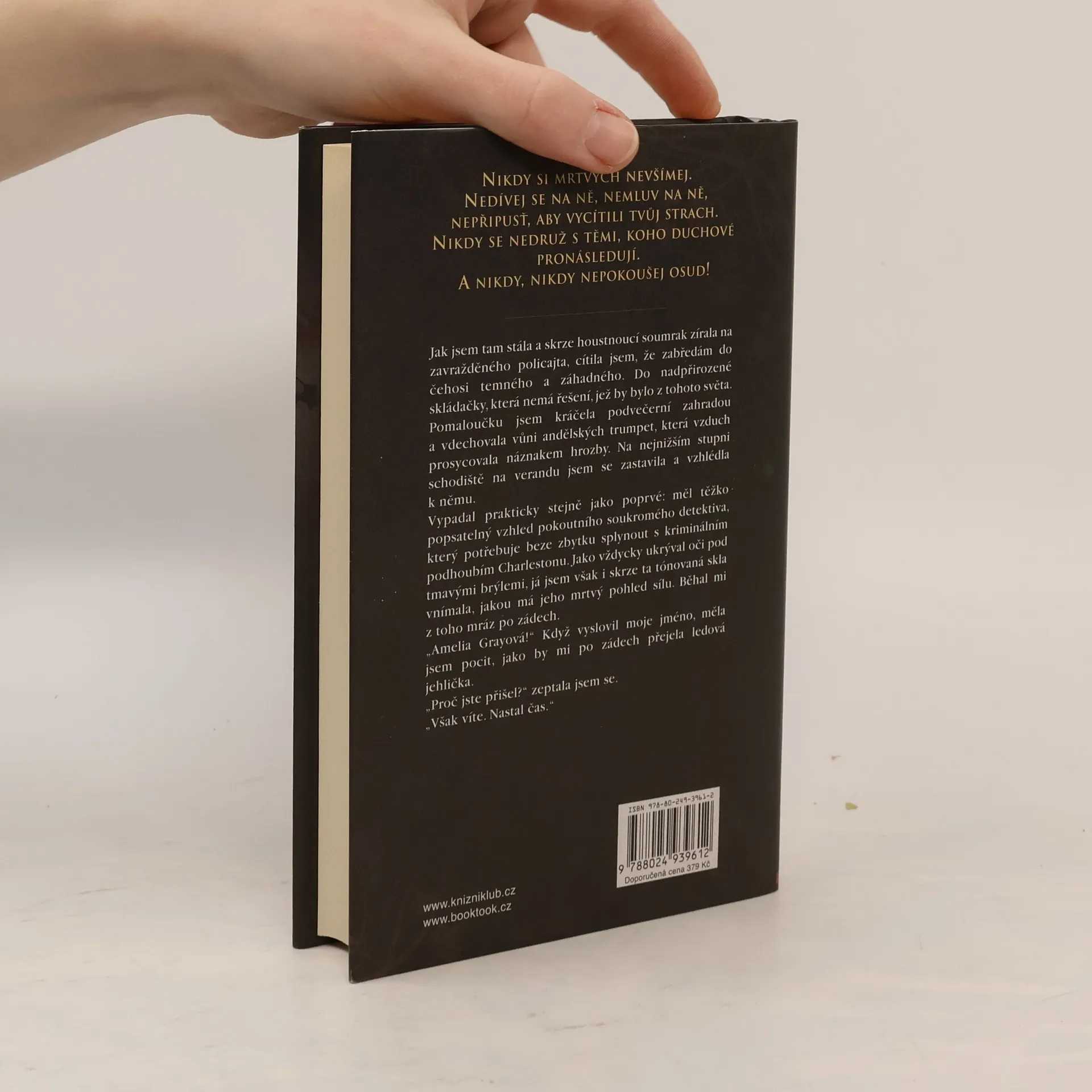 Hřbitovní královna Amelia Grayová porušila všechna pravidla, která ji měla chránit před duchy, jež vidí. Otevřela dveře do neznáma a Zlo, které za nimi číhá, ji chce zpátky k sobě... A nyní po ní ještě duch zavražděného policisty žádá, aby mu pomohla najít jeho vraha. Stopy ji zavedou do rodného Charlestonu, napohled líbezného města na americkém Jihu, v němž ale doposud kvete čarodějnictví, kořenářství a černá magie. Jakto že si toho Amelia dříve nevšimla? Aby toho nebylo málo, znovu se setkává s Johnem Devlinem, mužem, kterého měla milovat jen zdálky, a ocitá se tak před volbou, jež jí s definitivní platností změní život jednou provždy – bude se řídit otcovými pravidly, aby udržela sebe i Johna v bezpečí, anebo touhou svého srdce?