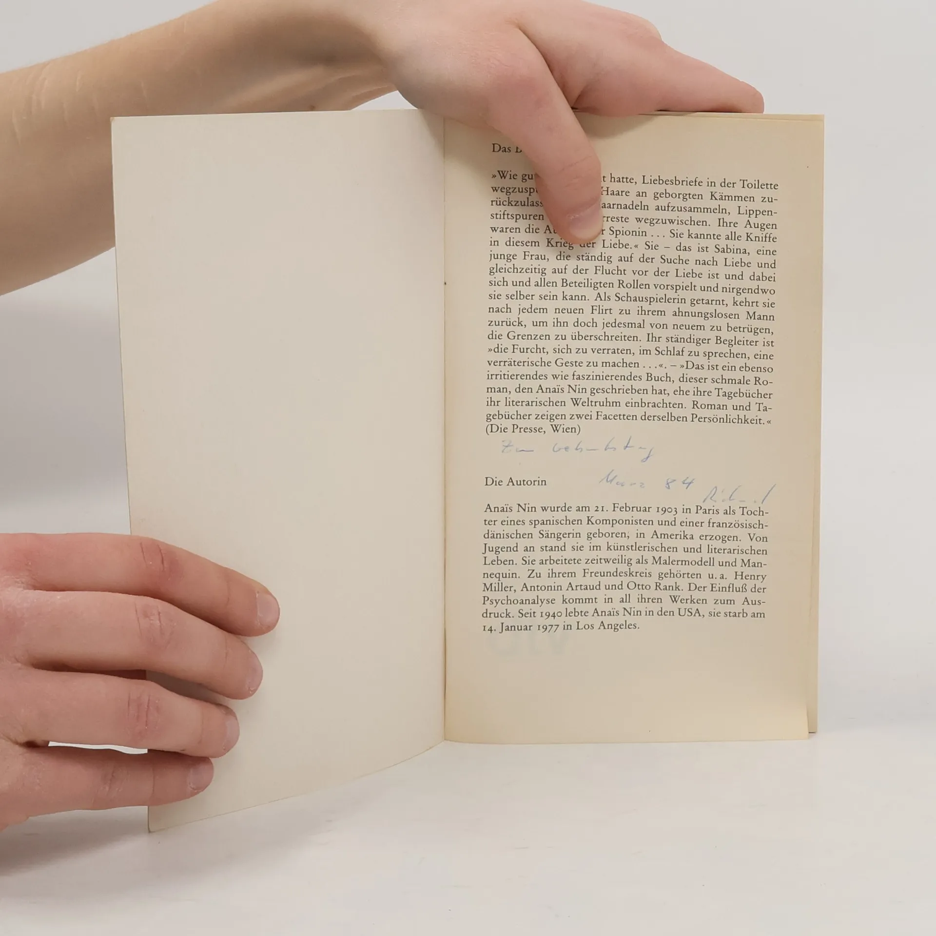 Ein Spion im Haus der Liebe, Anaïs Nin