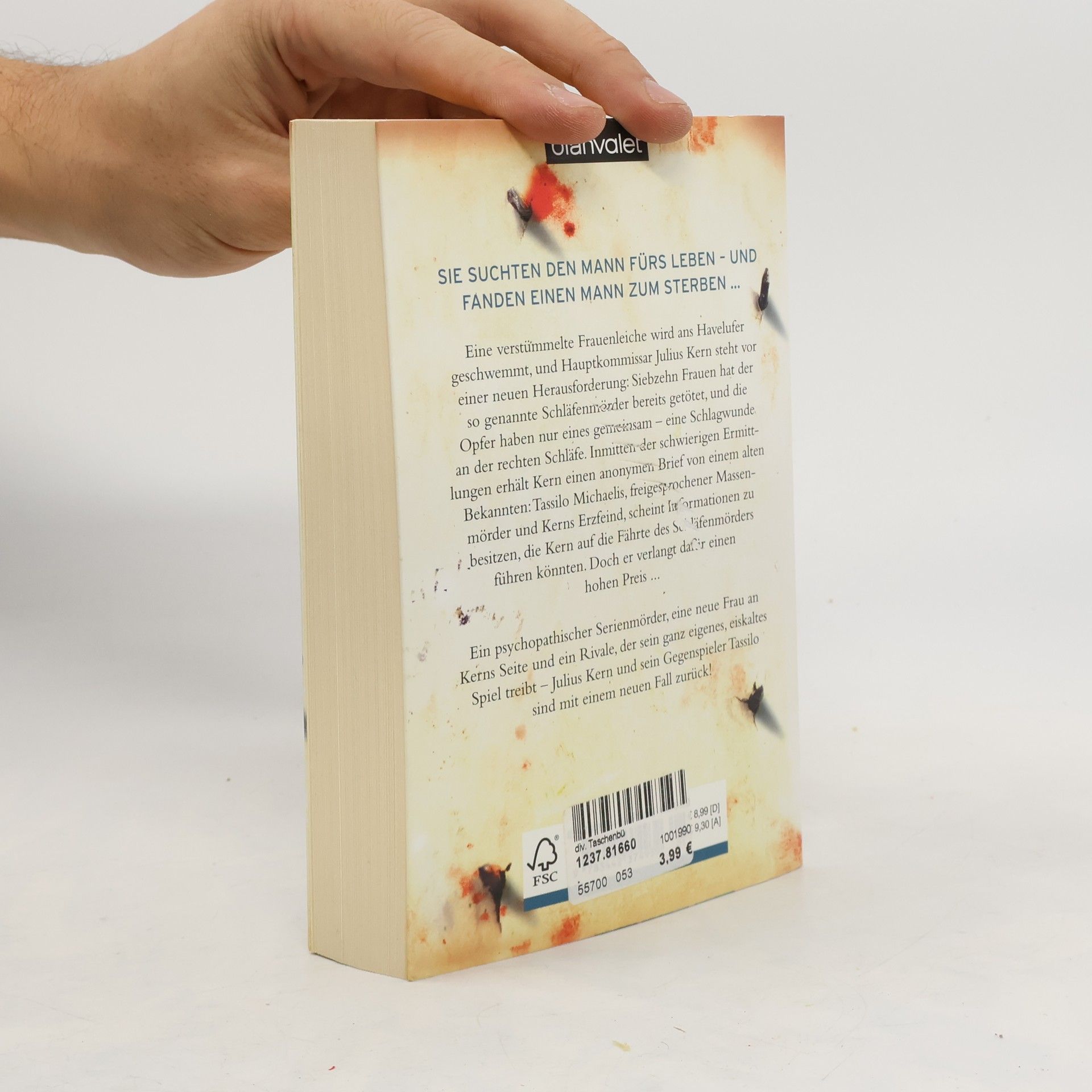 Sie suchten den Mann fürs Leben – und fanden einen Mann zum Sterben … Eine verstümmelte Frauenleiche wird ans Havelufer geschwemmt, und Hauptkommissar Julius Kern steht vor einer neuen Herausforderung: Siebzehn Frauen hat der so genannte Schläfenmörder bereits getötet, und die Opfer haben nur eines gemeinsam – eine Schlagwunde an der rechten Schläfe. Inmitten der schwierigen Ermittlungen erhält Kern einen anonymen Brief von einem alten Bekannten: Tassilo Michaelis, freigesprochener Massenmörder und Kerns Erzfeind, scheint Informationen zu besitzen, die Kern auf die Fährte des Schläfenmörders führen könnten. Doch er verlangt dafür einen hohen Preis …