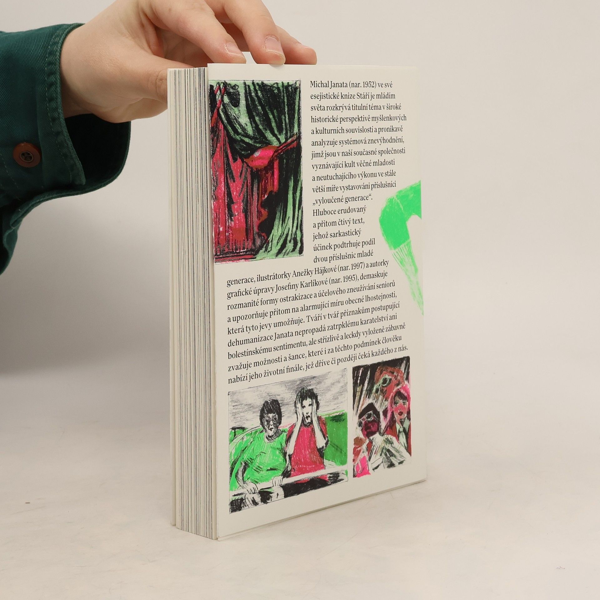 Michal Janata (nar. 1952) ve své esejistické knize Stáří je mládím světa rozkrývá titulní téma v široké historické perspektivě myšlenkových a kulturních souvislostí a pronikavě analyzuje systémová znevýhodnění, jimž jsou v naší současné společnosti vyznávající kult věčné mladosti a neutuchajícího výkonu ve stále větší míře vystavováni příslušníci „vyloučené generace“. Hluboce erudovaný a přitom čtivý text, jehož sarkastický účinek podtrhuje podíl dvou příslušnic mladé generace, ilustrátorky Anežky Hájkové (nar. 1997) a autorky grafické úpravy Josefiny Karlíkové (nar. 1995), demaskuje rozmanité formy ostrakizace a účelového zneužívání seniorů a upozorňuje přitom na alarmující míru obecné lhostejnosti, která tyto jevy umožňuje. Tváří v tvář příznakům postupující dehumanizace Janata nepropadá zatrpklému karatelství ani bolestínskému sentimentu, ale střízlivě a leckdy vyloženě zábavně zvažuje možnosti a šance, které i za těchto podmínek člověku nabízí jeho životní finále, jež dříve či později čeká každého z nás.
