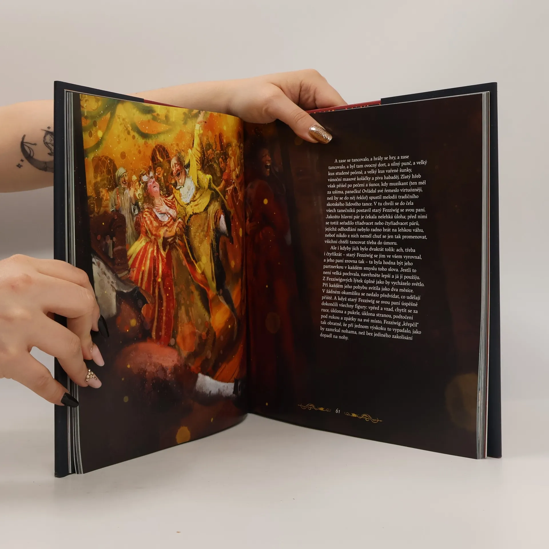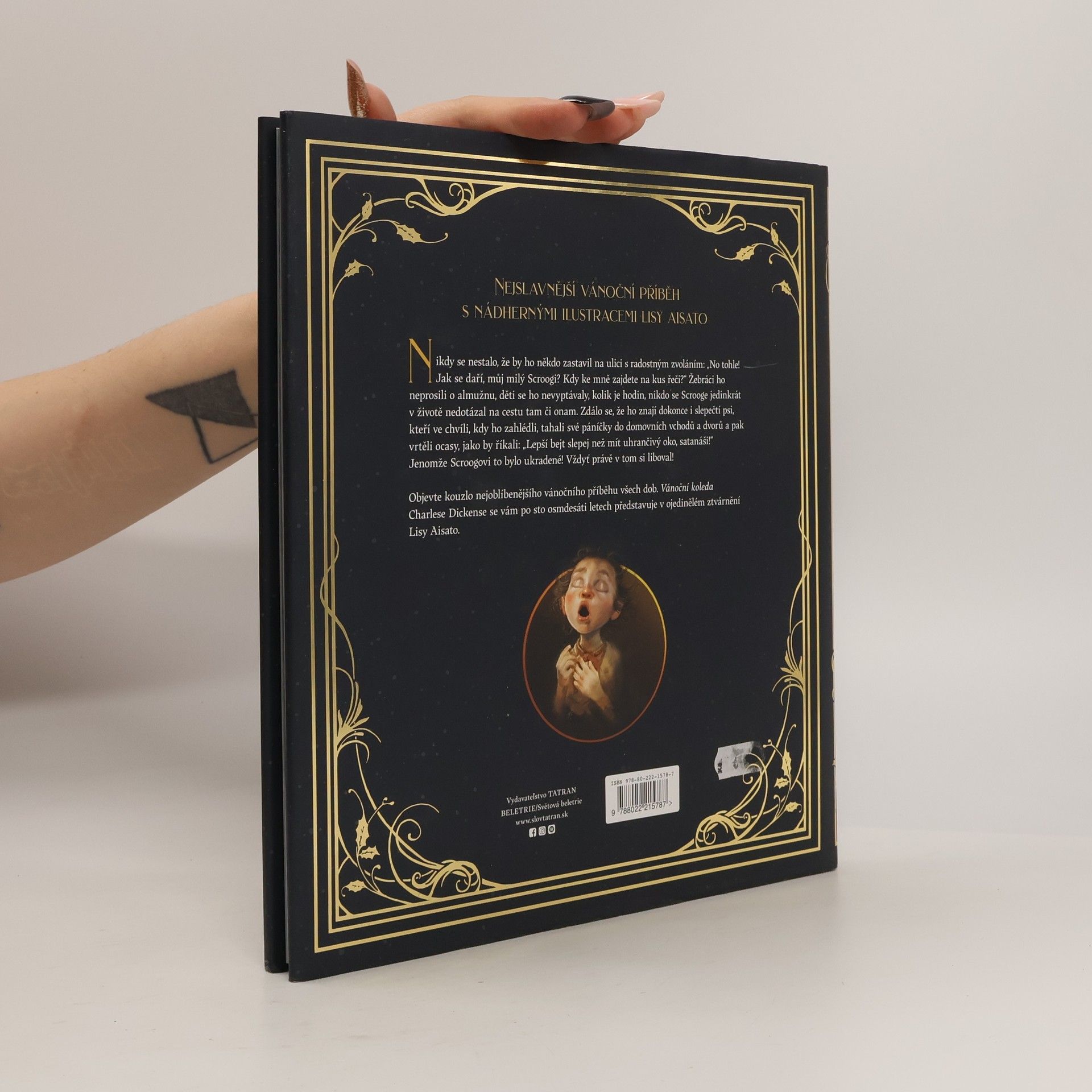 Objevte kouzlo nejoblíbenější vánoční pohádky na světě, která se po 180 letech vrací s ilustracemi norské umělkyně Lisy Aisato. Příběh sleduje starého Ebenezera Scroogea, milovníka peněz, který nenávidí Vánoce. Scrooge tráví své dny osaměle ve velkém, chladném domě, zatímco kolem něj lidé slaví v teple domova. Když se snaží usnout, navštíví ho tři duchové, kteří ho vezmou na poučné cesty, aby mu otevřeli oči. Scrooge se musí rozhodnout, zda přehodnotí svůj životní postoj, nebo zůstane plný zloby a nenávisti. Příběh poprvé vyšel 19. prosince 1843 a rychle se stal populárním, přičemž Londýňané stáli hodiny v řadě, aby si ho poslechli od samotného autora. Čtenáři příběh nadšeně přijali a přispěl k obnovení zájmu o vánoční tradice, jako jsou koledy a posílání přání. Také vyvolal vlnu dobročinnosti mezi bohatými průmyslníky. Autor původně zamýšlel dílo jako kritiku kapitalistických vykořisťovatelů, ale dnes je považováno za vánoční klasiku, která inspirovala mnohé divadelní hry a filmy a oslovuje čtenáře všech věkových kategorií po celém světě.