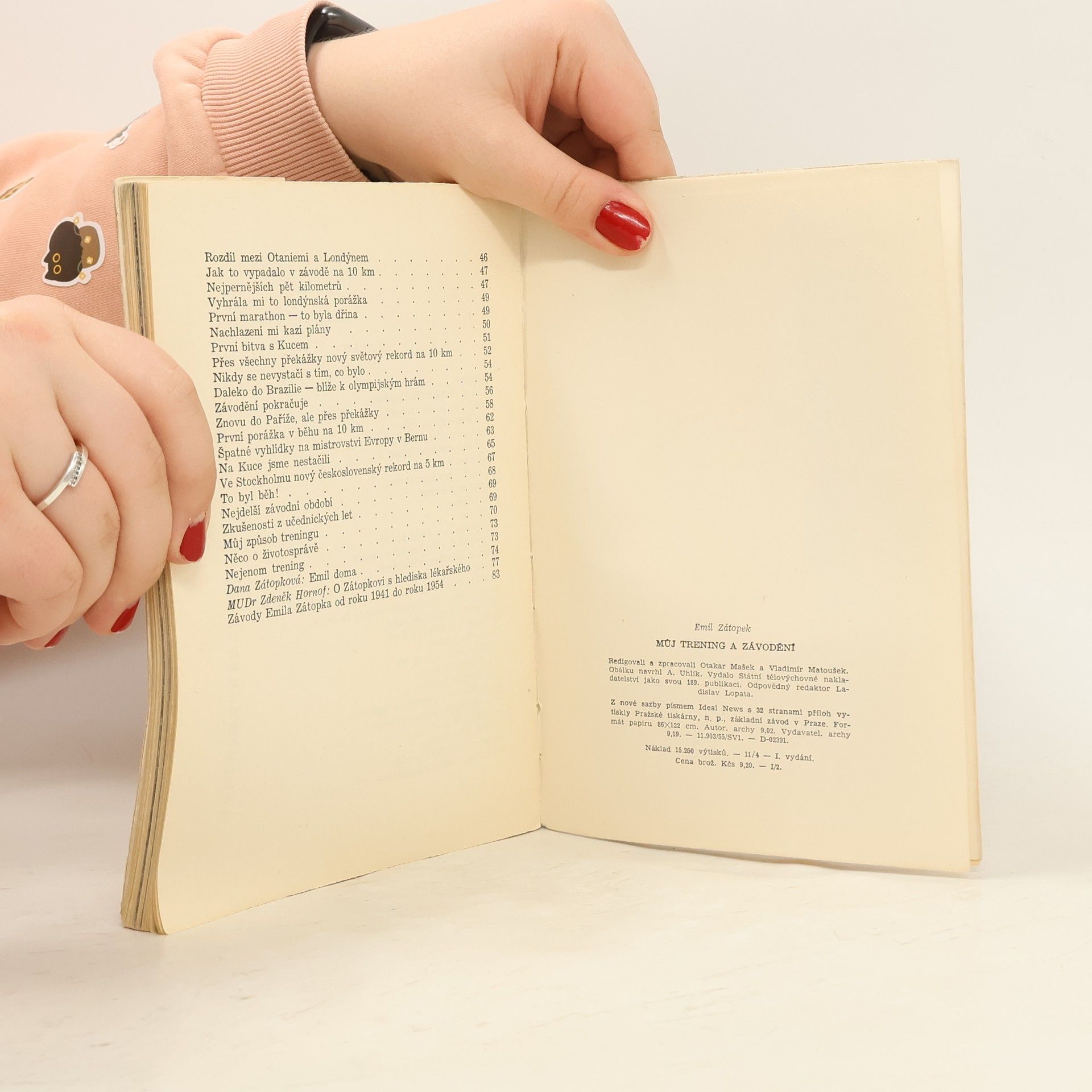 Nejúspěšnější československý sportovec vypráví v knize o své sportovní dráze od prvních začátků až do r. 1954. Nehledaným, svěžím způsobem jsou vylíčeny jednotlivé etapy jeho atletického vzestupu až k vrcholným výkonům na světovém kolbišti, při čemž technické údaje jsou oživeny mnoha podrobnostmi o drobných příbězích závodníka, ale též o zásadách Zátopkova treningu a o významu vůle a bojovnosti při zvyšování sportovních výkonů. Red. a zprac. Otakar Mašek a Vladimír Matoušek; Dana Zátopková: Emil dom ; předml. Otakar Mašek ; Zdeněk Hornof O Zátopkovi s hlediska lékařského, dosl. Přehl. závodů Emila Zátopka od r. 1941–1954.