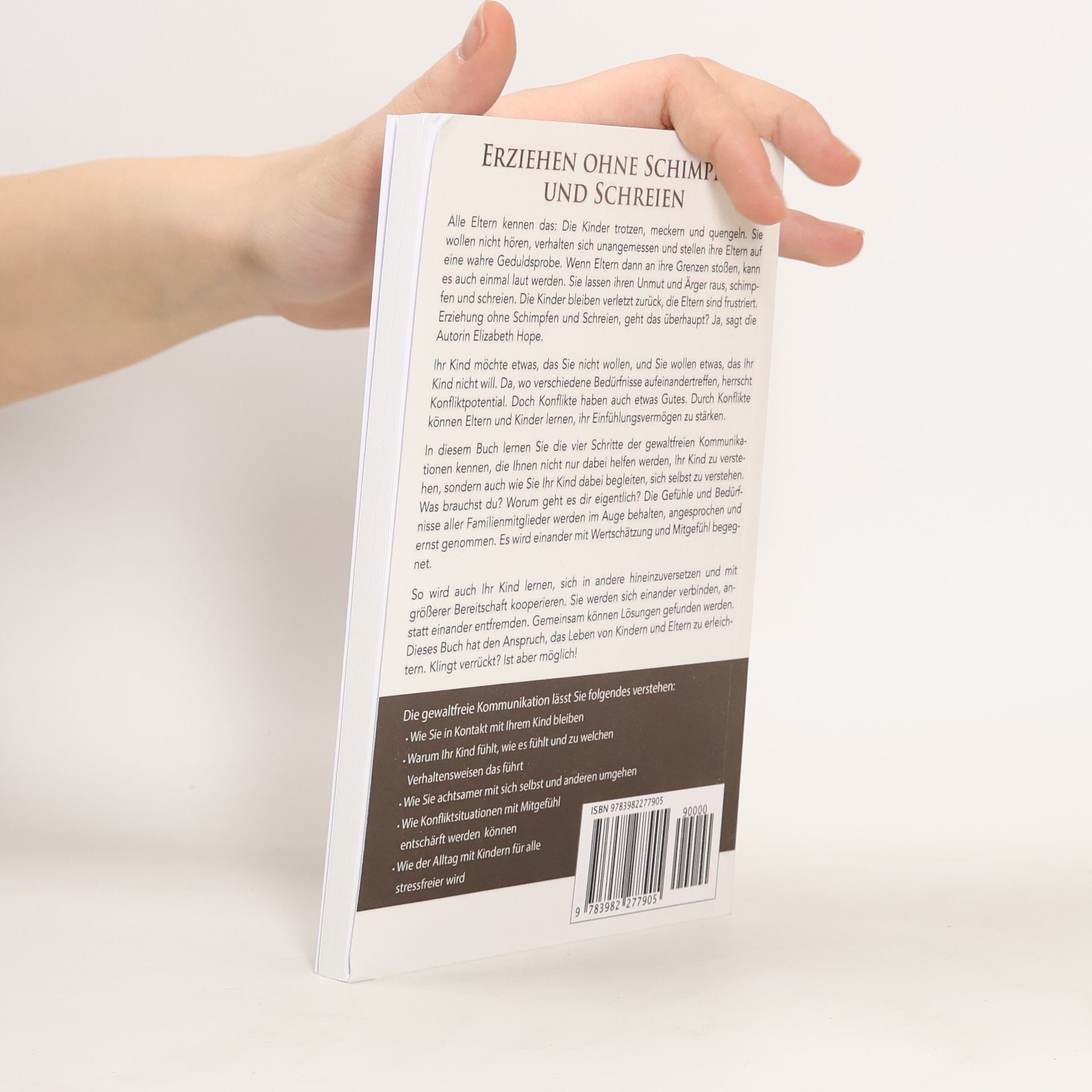 In Kontakt bleiben, Bedürfnisse erkennen, Konflikte entschärfen – dieses Buch zielt darauf ab, das Leben von Kindern und Eltern zu erleichtern. Die Autorin Elizabeth Hope spricht Eltern an, die stets das Beste für ihr Kind wollen und oft nächtelang über Lösungen für familiäre Herausforderungen nachdenken. Trotz guter Vorsätze und der Absicht, liebevoll und konsequent zu erziehen, entstehen immer wieder Stress und Wut. Konflikte zwischen Eltern und Kindern sind unvermeidlich, was zu emotionalen Spannungen führen kann. Doch diese belastenden Situationen lassen sich vermeiden! Hope zeigt, wie gewaltfreie Kommunikation mit Kindern möglich ist. Sie erläutert, wie man Fehler akzeptiert und Konflikte besser löst. Ein tiefes Verständnis für das Kind führt zu einer wertschätzenden Eltern-Kind-Kommunikation. Kinder können in einem liebevollen Umfeld aufwachsen und ein gesundes Selbstwertgefühl entwickeln. Konflikte sind Teil des Familienlebens und bieten Chancen zur Stärkung von Empathie und Verbindung. Das Buch bietet praktische Ansätze, um notwendige Regeln liebevoll und konsequent umzusetzen und gesunde Grenzen zu ziehen. Ein ruhiger Umgang mit Stress und Wut ist erlernbar. Hope nimmt die Leser mit auf eine Reise in die Welt der gewaltfreien Kommunikation, um zu zeigen, dass Erziehung ohne Schimpfen und Schreien möglich ist und dass Geduld und Ruhe nicht schwer zu bewahren sind.