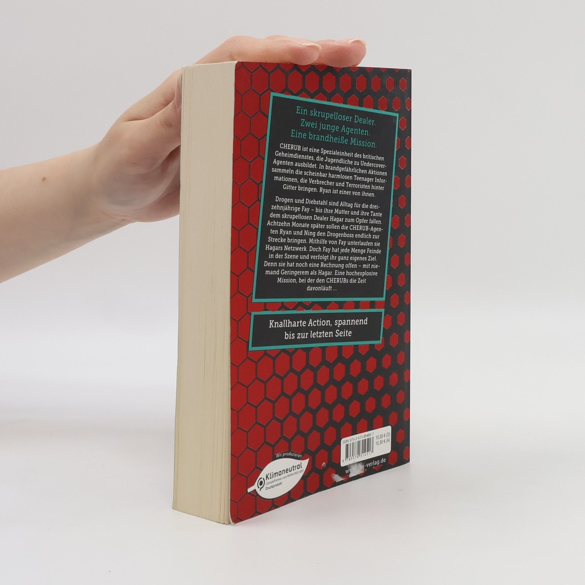 Ein skrupelloser Dealer. Zwei junge Agenten. Eine brandheiße Mission. Drogen und Diebstahl sind Alltag für die dreizehnjährige Fay – bis ihre Mutter und ihre Tante dem skrupellosen Dealer Hagar zum Opfer fallen. Achtzehn Monate später sollen die CHERUB-Agenten Ryan und Ning den Drogenboss endlich zur Strecke bringen. Mithilfe von Fay unterlaufen sie Hagars Netzwerk. Doch Fay hat jede Menge Feinde in der Szene und verfolgt ihr ganz eigenes Ziel. Denn sie hat noch eine Rechnung offen – mit niemand Geringerem als Hagar. Eine hochexplosive Mission, bei der den CHERUBs die Zeit davonläuft ... Knallharte Action, spannend bis zur letzten Seite!
