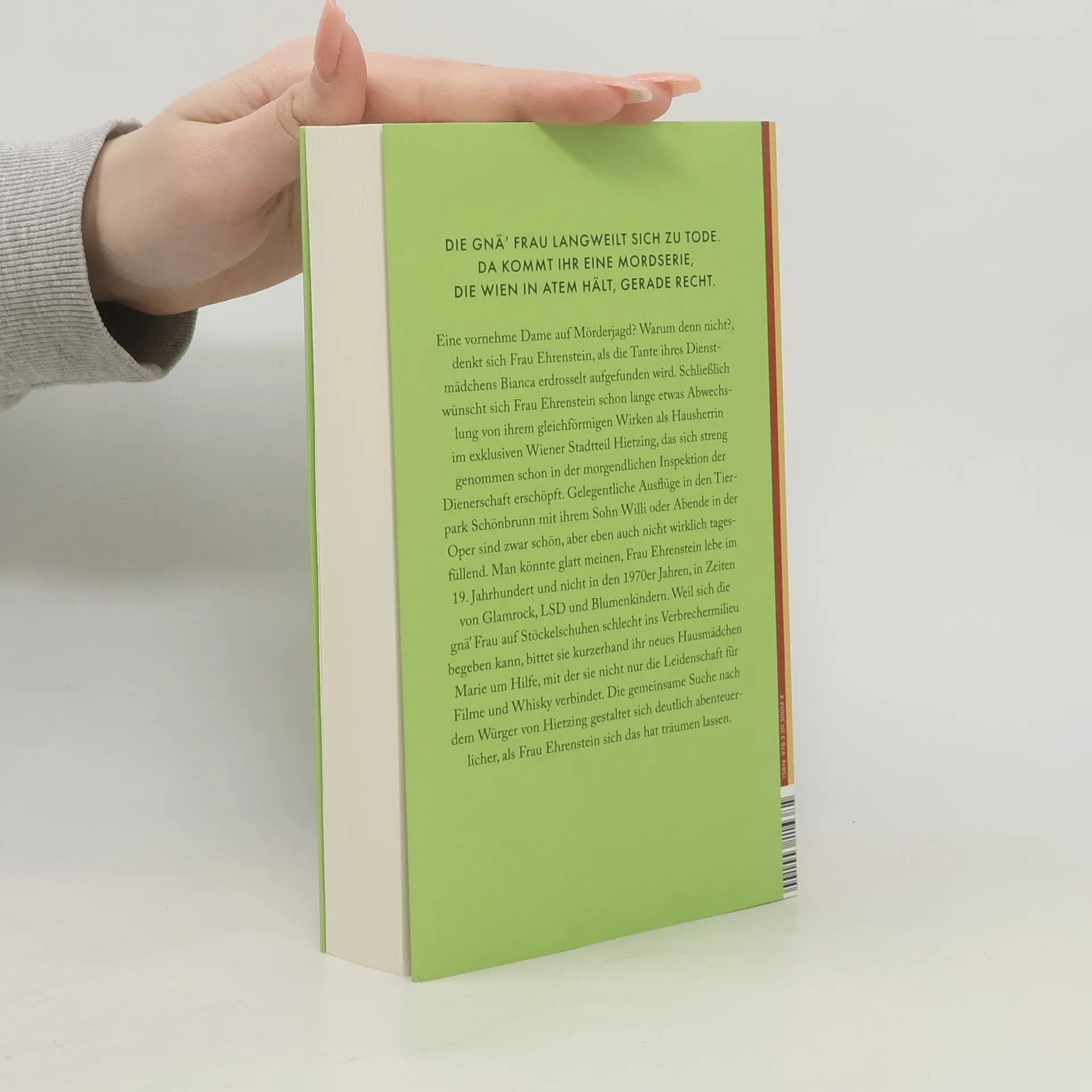 Eine vornehme Dame auf Mörderjagd? Warum denn nicht?, denkt sich Frau Ehrenstein, als die Tante ihres Dienstmädchens Bianca erdrosselt aufgefunden wird. Schließlich wünscht sich Frau Ehrenstein schon lange etwas Abwechslung von ihrem gleichförmigen Wirken als Hausherrin im exklusiven Wiener Stadtteil Hietzing, das sich eigentlich schon in der morgendlichen Inspektion der Dienerschaft erschöpft. Gelegentliche Ausflüge in den Tierpark Schönbrunn mit ihrem Sohn Willi oder Abende in der Oper sind zwar schön, aber eben auch nicht wirklich tagesfüllend. Man könnte glatt meinen, Frau Ehrenstein lebe im 19. Jahrhundert und nicht in den 1970er Jahren, in Zeiten von Glamrock, LSD und Blu menkindern. Weil sich die gnä’ Frau in Stöckel schuhen schlecht ins Verbrechermilieu begeben kann, bittet sie kurzerhand ihr neues Hausmädchen Marie um Hilfe, mit der sie nicht nur die Leidenschaft für Filme und Whiskey verbindet. Die gemeinsame Suche nach dem Würger von Hietzing gestaltet sich deutlich abenteuerlicher, als Frau Ehrenstein sich das hat träumen lassen.