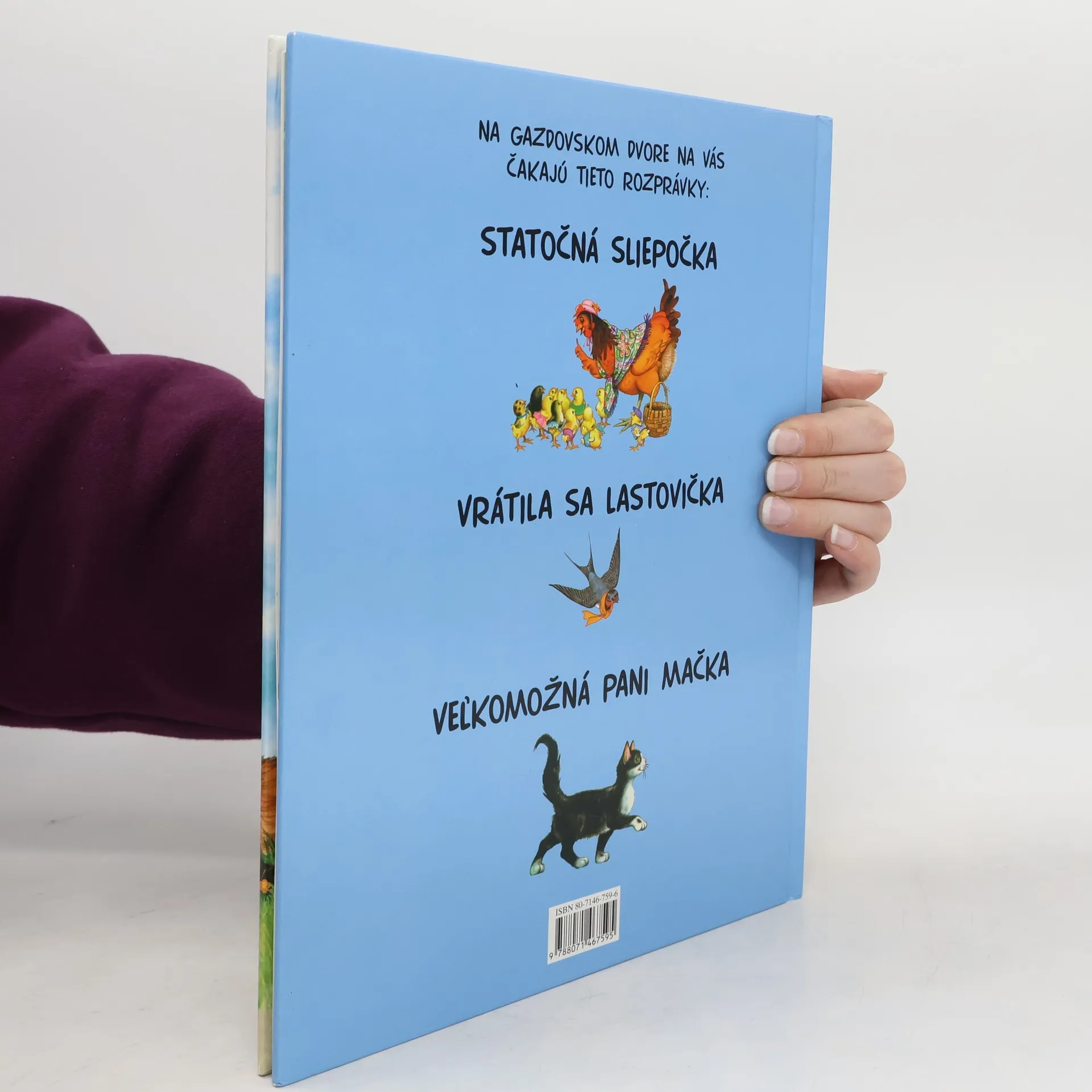 Na gazdovskom dvore vás čakajú tieto rozprávky: Statočná sliepočka, Vrátila sa lastovička, Veľkomožná pani mačka.