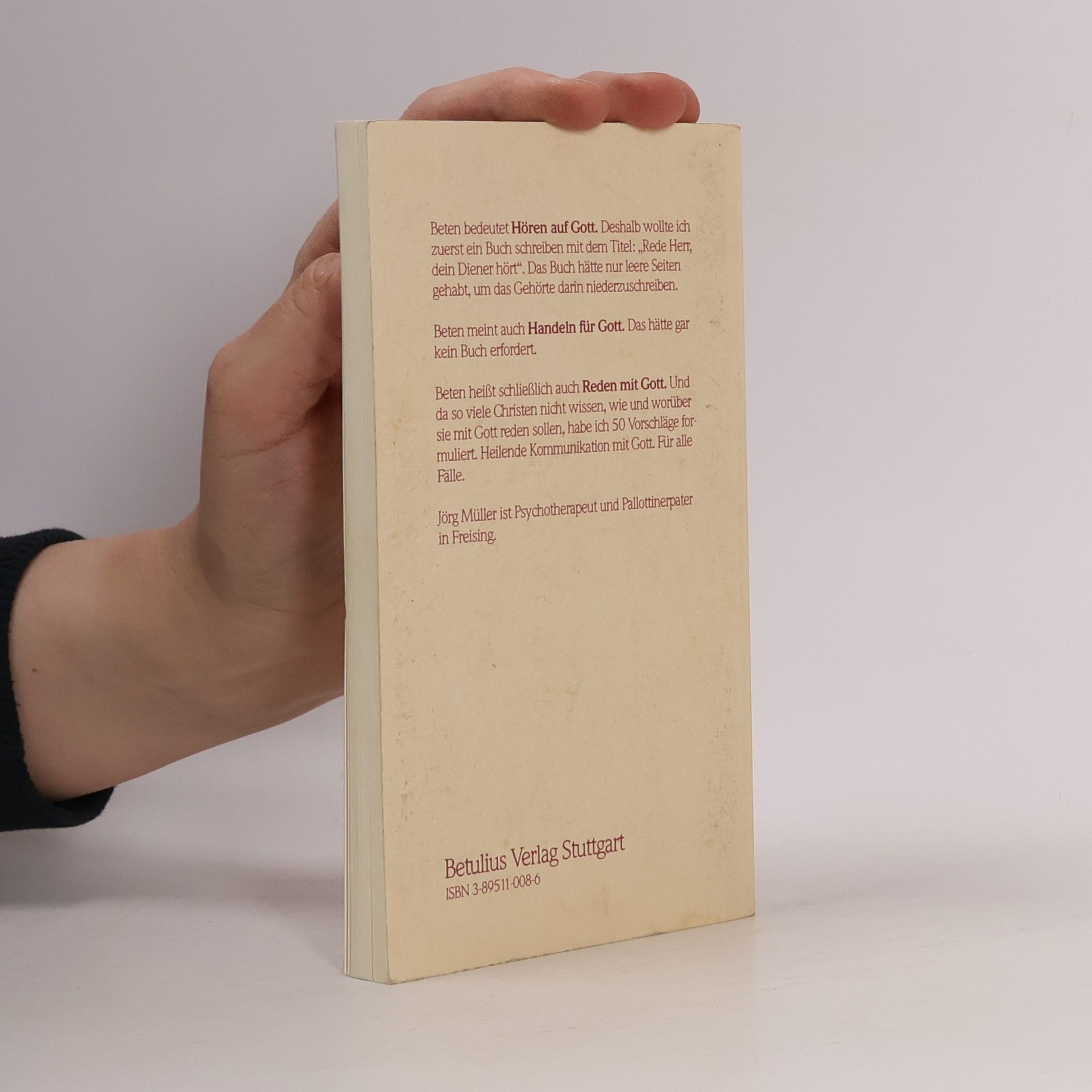 Beten heißt auch Reden mit Gott. Und da so viele Christen nicht wissen, wie und worüber sie mit Gott reden sollen, hat Jörg Müller 50 Vorschläge formuliert. Heilende Kommunikation mit Gott. Für alle Fälle. Dr. Jörg Müller SAC ist katholischer Priester (Pallottinerpater), Pädagoge und seit 30 Jahren klinischer Psychologe. Er lebt in Freising. Seine erfolgreichen Bücher haben eine Gesamtauflage von über 1.000.000 Exemplaren.