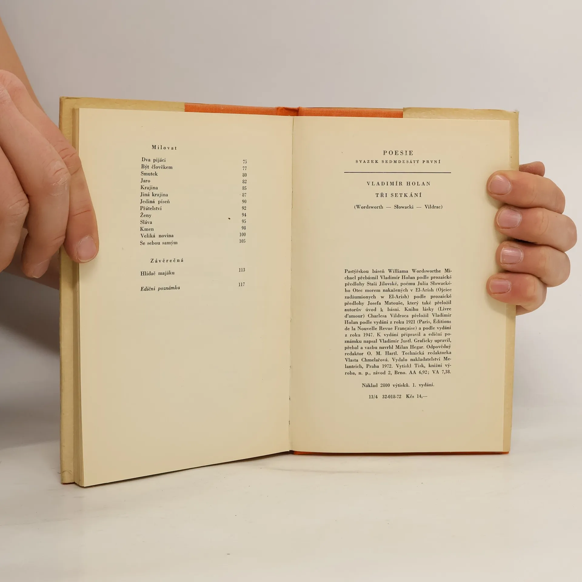 Pastýřskou báseň W. Wordsworthe Michael, poému J. Słowackého Otec morem nakažených v El-Arish a Knihu lásky Ch. Vildraca přeložil a přebásnil Vladimír Holan. Tři významné činy Holanova poválečného překladatelského úsilí nás seznamují s tvorbou autorů, vnitřně spřízněnou s dílem Holanovým. Zasahují do tří jazykových oblastí, anglické, polské a francouzské. Zájem o epické skladby typu básně Michael nebo eposu Słowackého je pochopitelný u autora Příběhů. A francouzská poezie vždy patřila k nejčastějším překladatelským zájmům básníka.