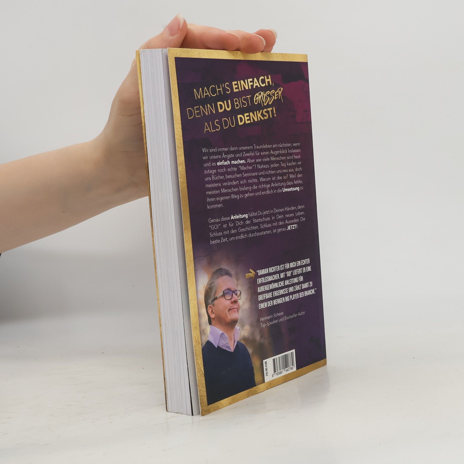Mach’s einfach, denn du bist größer als du denkst! Wir sind immer dann unserem Traumleben am nächsten, wenn wir unsere Ängste und Zweifel für einen Augenblick loslassen und es einfach machen. Aber wie viele Menschen sind heutzutage noch echte „Macher“? Nahezu jeden Tag kaufen wir uns Bücher, besuchen Seminare und richten uns neu aus, doch meistens verändert sich nichts. Warum ist das so? Weil den meisten Menschen bislang die richtige Anleitung dazu fehlte, ihren eigenen Weg zu gehen und endlich in die Umsetzung zu kommen.Genau diese Anleitung hältst Du jetzt in Deinen Händen, denn „GO!“ ist für Dich der Startschuss in Dein neues Leben. Schluss mit den Geschichten. Schluss mit den Ausreden. Die beste Zeit, um endlich durchzustarten, ist genau JETZT!