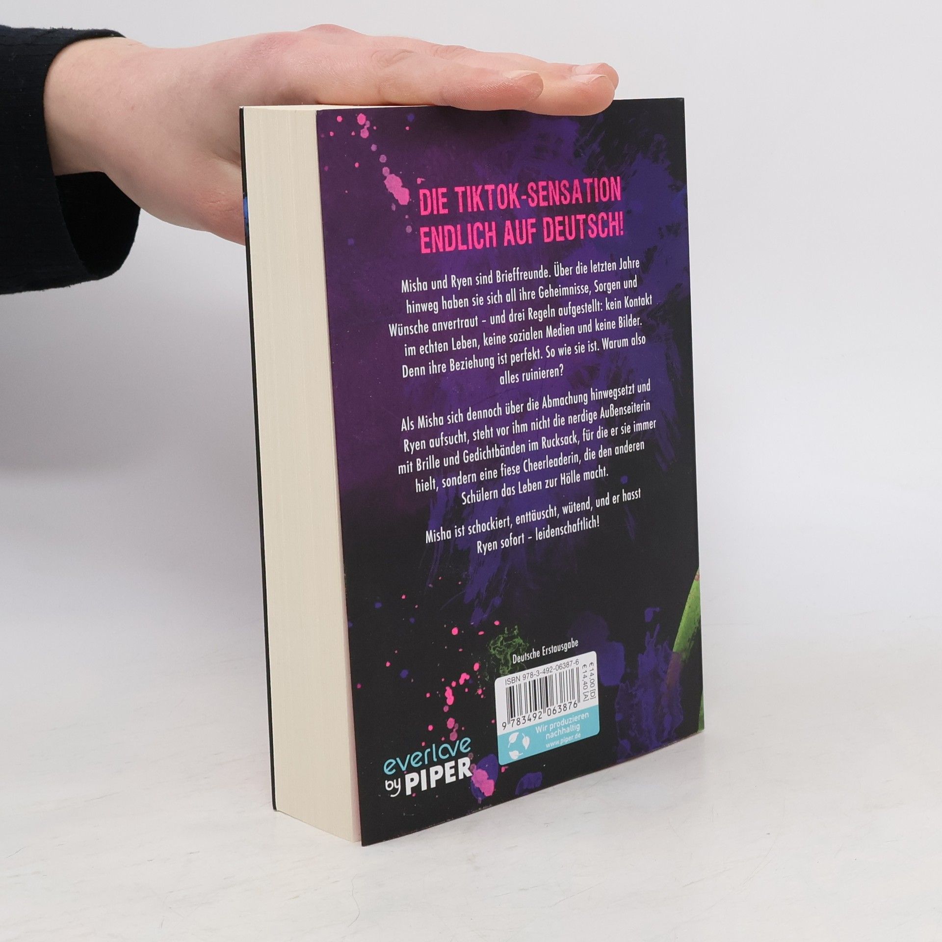 Misha und Ryen sind Brieffreunde. Sie haben sich über Jahre hinweg all ihre Geheimnisse, Sorgen und Wünsche anvertraut – und sie haben drei Regeln: kein Kontakt im echten Leben, keine sozialen Medien und keine Bilder. Denn das, was sie miteinander haben, ist perfekt. Warum es also ruinieren? Als Misha sich dennoch über die Abmachung hinwegsetzt und Ryen aufsucht, steht vor ihm nicht die nerdige Außenseiterin mit Brille und Gedichtbänden im Rucksack, für die er sie hielt, sondern eine fiese Cheerleaderin, die den anderen Schülern das Leben zur Hölle macht. Misha ist schockiert, enttäuscht, wütend, und er hasst Ryen sofort – leidenschaftlich!