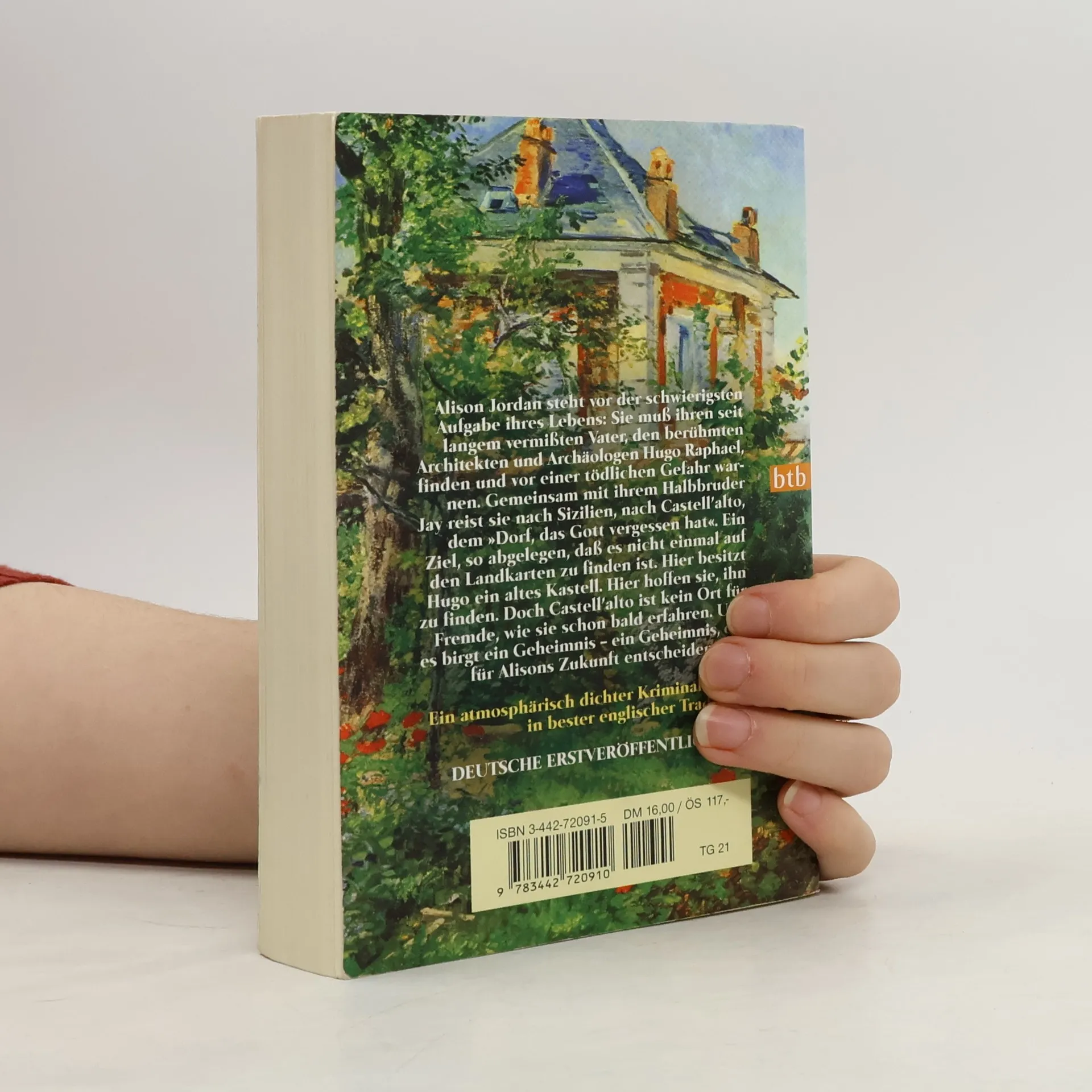 Alison Jordan steht vor der schwierigsten Aufgabe ihres Lebens: Sie muß ihren seit langem vermißten Vater, den berühmten Architekten und Archäologen Hugo Raphael, finden und vor einer tödlichen Gefahr warnen. Gemeinsam mit ihrem Halbbruder Jay reist sie nach Sizilien, nach Castell'alto, dem Dorf, das Gott vergessen hat. Ein Ziel, so abgelegen, daß es nicht einmal auf den Landkarten zu finden ist. Hier besitzt Hugo ein altes Kastell. Hier hoffen sie, ihn zu finden. Doch Castell'alto ist kein Ort für Fremde, wie sie schon bald erfahren. Und es birgt ein Geheimnis - ein Geheimnis, das für Alisons Zukunft entscheidend ist.