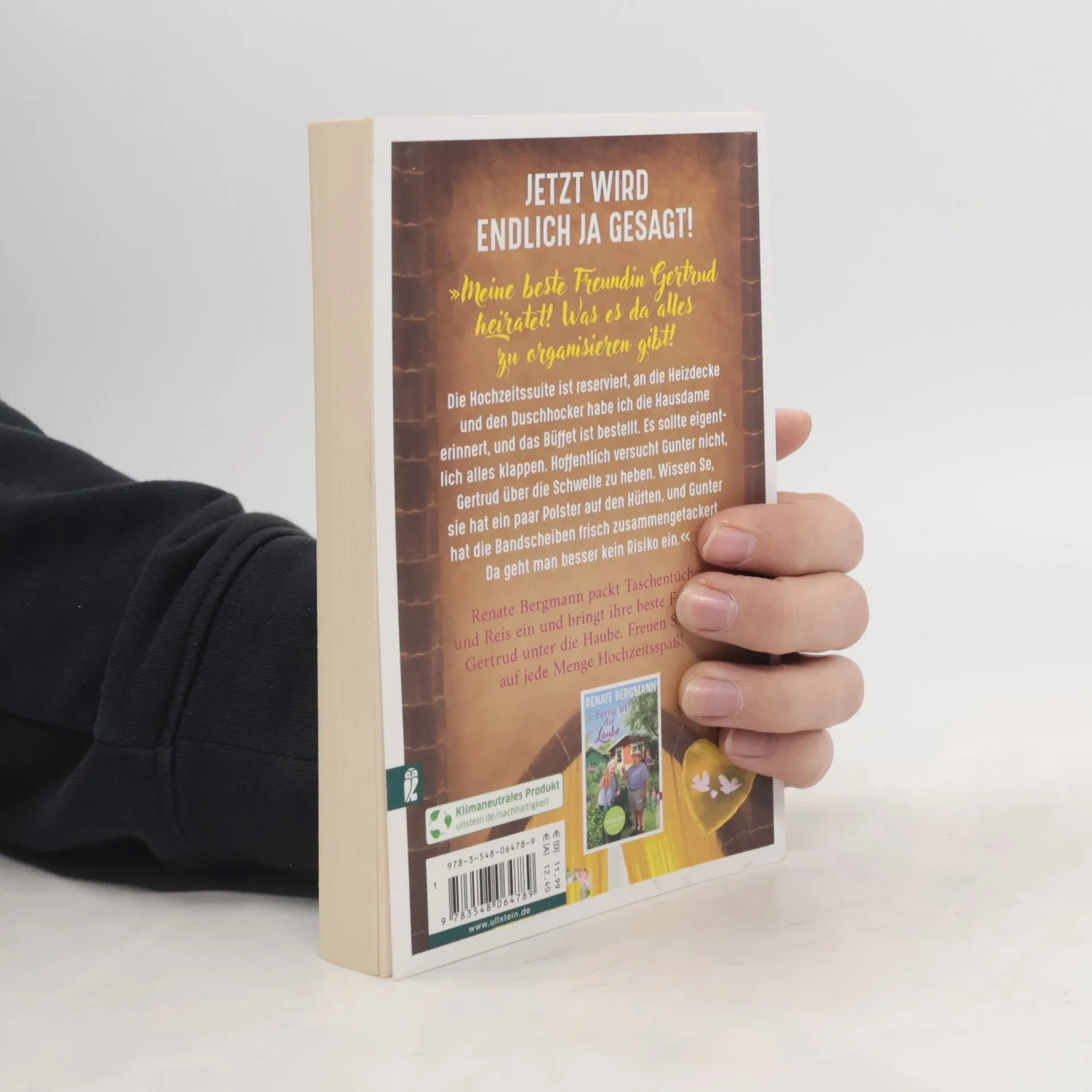 Jetzt wird endlich ja gesagt! »Ich dachte ja immer, das nächste Mal, dass ich mit meiner besten Freundin Gertrud in der Kirche sein würde, wäre auf einer unserer Beerdigungen. Aber jetzt gibt es einen viel schöneren Anlass: Sie heiratet nämlich! Was da alles zu organisieren ist! Wissen Se, Gertrud ist 82 wie ich. Da bin ich Brautjungfer und Ersatzbrautmutter in einem. Ich führe sie auch morgen zum Altar. Ja, auf Renate Bergmann ist Verlass! Der Frau Schlode, die mit ihrem Kinderchor jeden Zeitplan bei Festen durcheinanderbringt, habe ich eine falsche Kirche und ein falsches Datum gesagt, hihi! Die Hochzeitssuite ist reserviert, an die Heizdecke habe ich die Hausdame erinnert und das Büffet ist bestellt. Es sollte eigentlich alles klappen … aber wann klappt schon alles? Hoffentlich versucht Gunter nicht, Gertrud über die Schwelle zu heben. Wissen Se, sie hat ein paar Polster auf den Hüften, und Gunter hat die Bandscheiben frisch zusammengetackert. Da geht man besser kein Risiko ein.« Renate packt die Taschentücher und den Reis ein und bringt ihre beste Freundin Gertrud unter die Haube. Freuen Sie sich auf jede Menge Hochzeitsspaß!