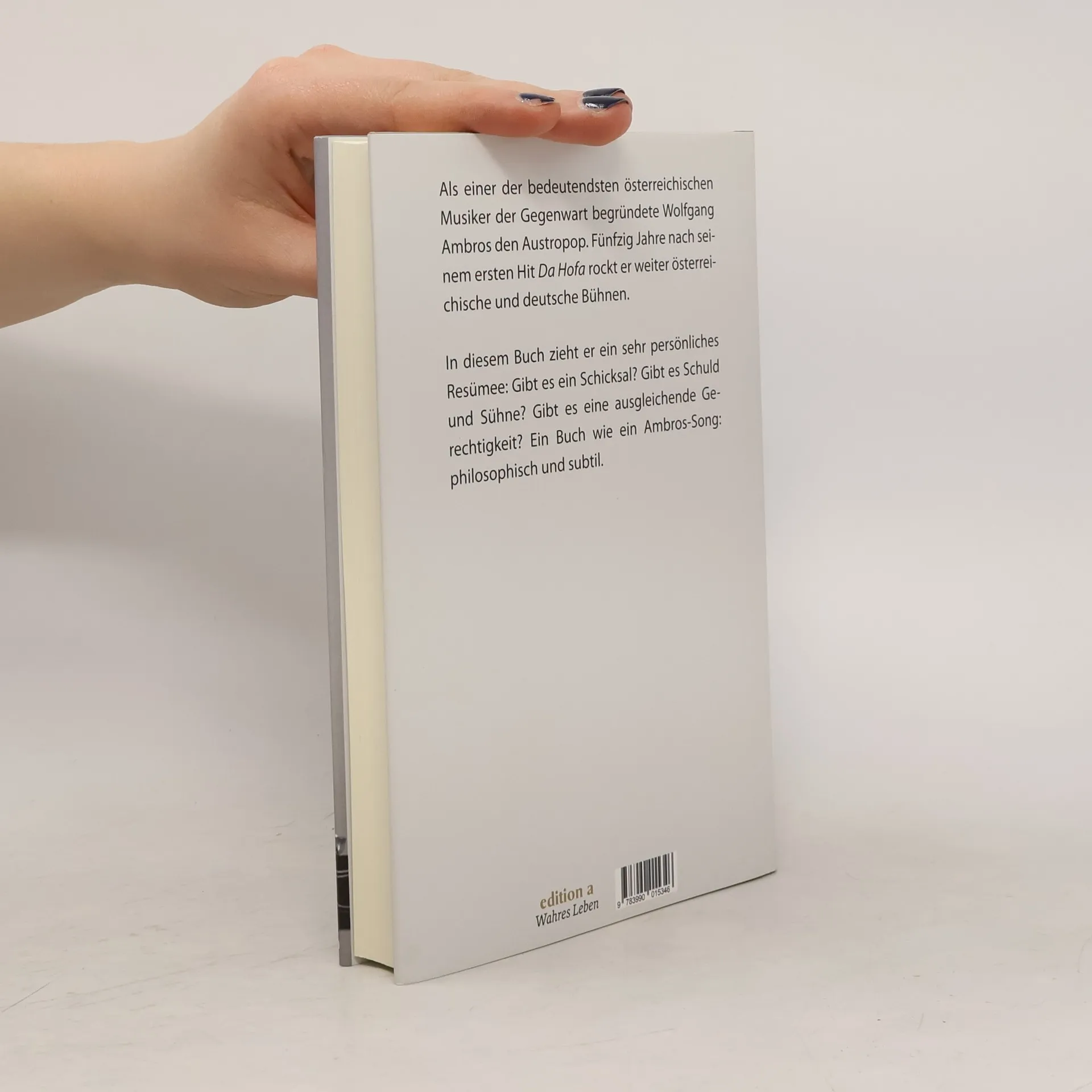 Als einer der bedeutendsten österreichischen Musiker der Gegenwart begründete Wolfgang Ambros den Austropop mit. Fünfzig Jahre nach seinem ersten Hit Da Hofa rockt er weiter österreichische und deutsche Bühnen. In diesem Buch zieht er ein sehr persönliches Zwischenresümee: Gibt es ein Schicksal? Gibt es Schuld und Sühne? Gibt es eine ausgleichende Gerechtigkeit? Ein Buch wie ein Ambros-Song: philosophisch und subtil.